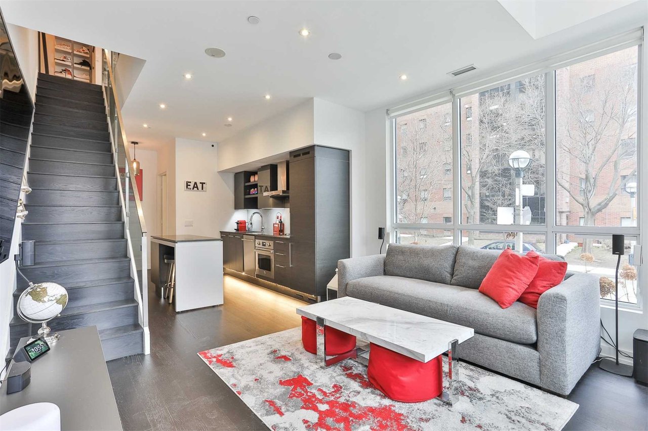 SOLD. Rarely Offered and Highly Sought-After Townhouse. Private Street Access and Premium Corner Locale! Enjoy All That Condo Living Offers (Conceirge, Amenities, Visitor Parking) Without Taking An Elevator. Utmost In Luxurious Finishes. Hardwood Floors. Soaring 18 Ft Cathedral Ceilings. Expansive Terrace with Stunning View. Towering Windows and Ample Sunlight. Open Concept Design. Main Floor Powder Rm! Truly One Of A Kind. Unbeatable Location With Ttc and Grocery At Front Door. Steps To Toronto's Best Dining and Shops.