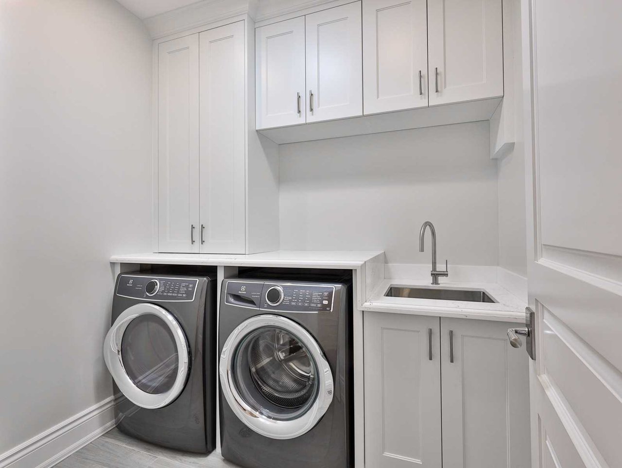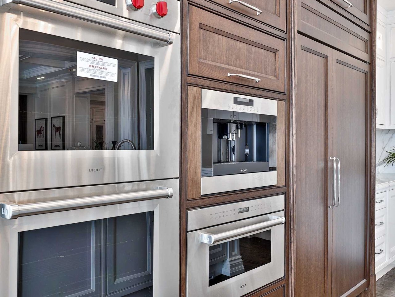 · Appliances include: Paneled Subzero bar refrigerator, Wolf microwave, paneled Subzero refrigerator/freezer, professional hood fan, paneled Miele dishwasher, two Wolf stainless steel ovens, a Wolf 8 burner gas cook top and an Electrolux washer and dryer.