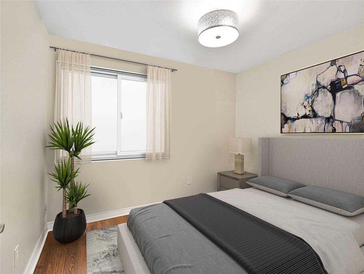 The Fifth Bedroom features laminate floor, pot lights and a window.