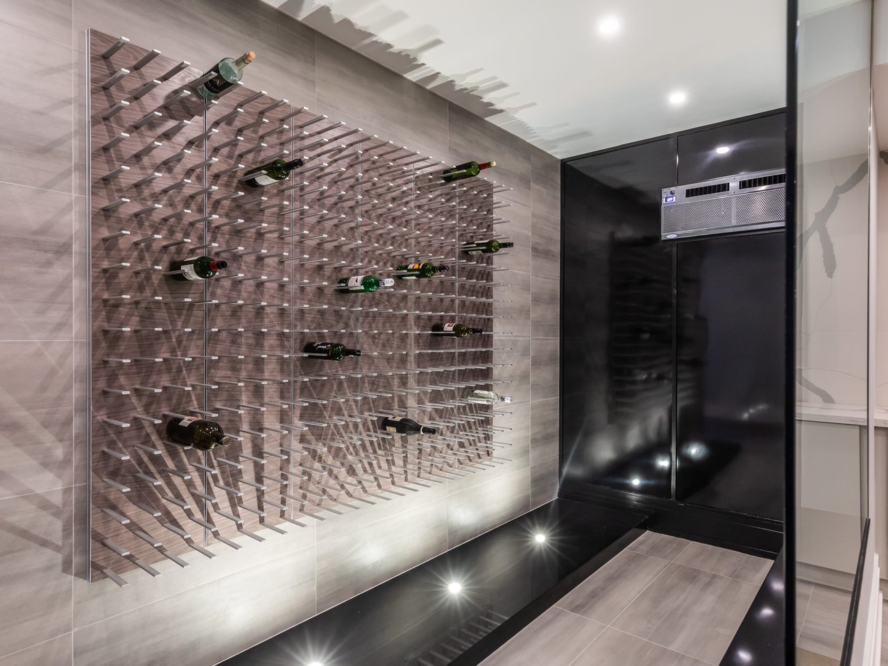 The Home Theatre features a broadloom floor, tiered seating complete with integrated night lighting, 150” screen, and projector, light sconces, pot lights, custom-designed, and crafted cabinetry, 7.1 Dolby surround sound speakers, and soundproof acoustic paneling.