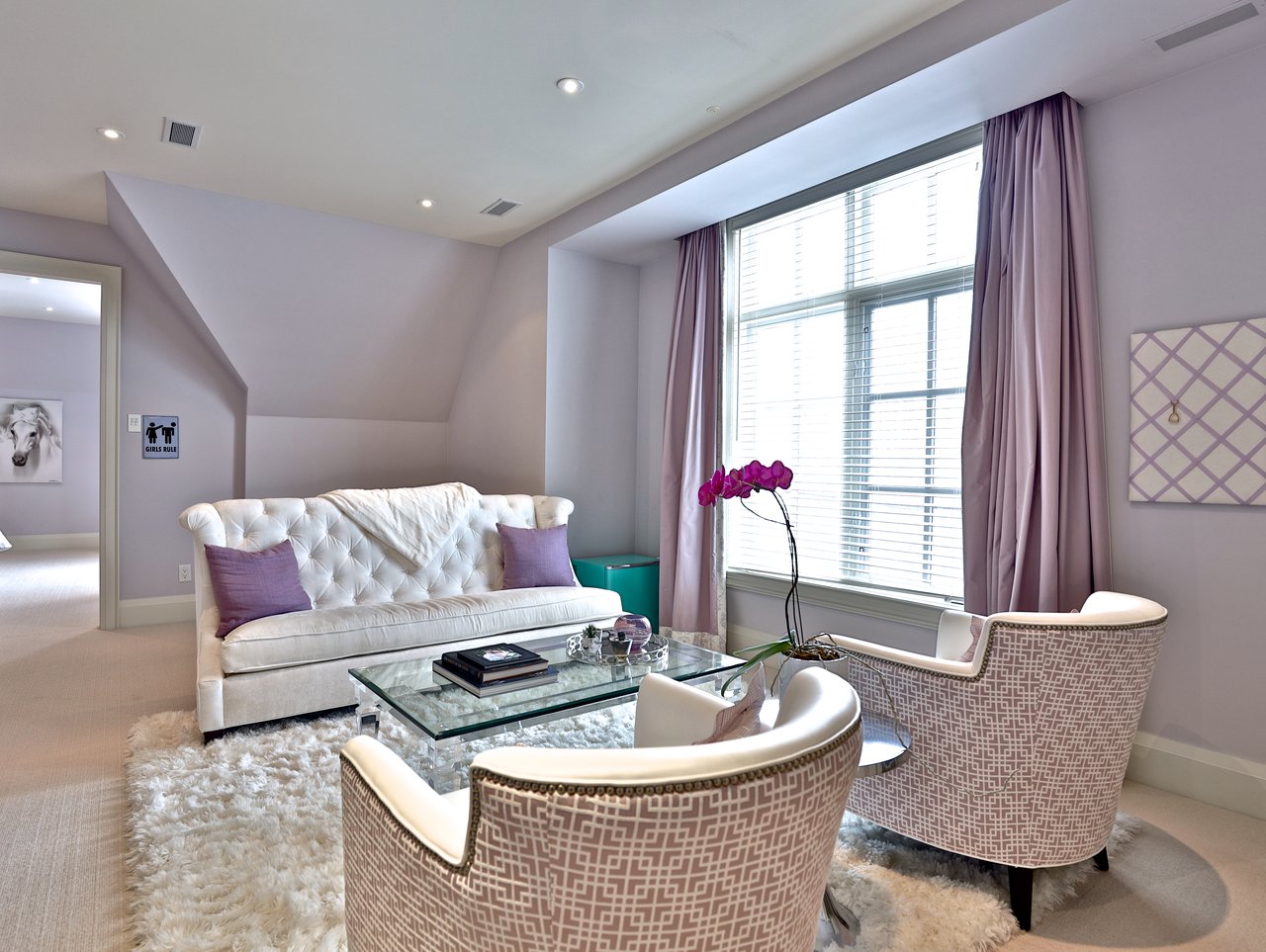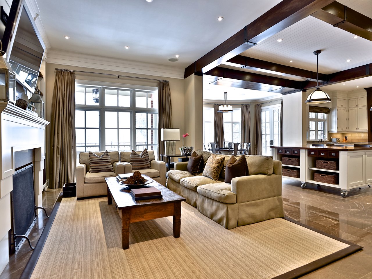 The Sitting Room, Open In Design To The Wet Bar And Media Entertainment Room, Features Gris Pulpis Marble Floor With An Inset Carpet, Pot Lights, Built-In Speakers And A Pair Of French Doors Outfitted With Custom Automated Drapery Opening Onto The Lower Gardens And Swimming Pool Area.