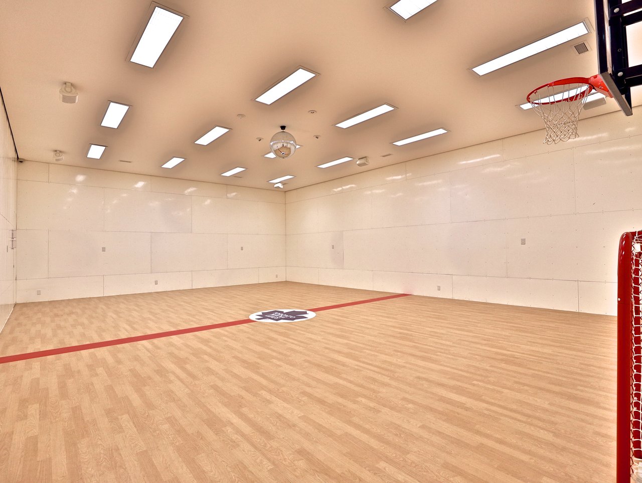 The Sport Court Features Soaring Ceilings, Specialty Flooring, Built-In Speakers, A Storage Room With On Wall Storage System, Disco Ball, Basketball Net, Floor-To-Ceiling Tuflex Hockey Boarding, Acoustic Dampening Ceiling, Toronto Maple Leafs Floor Logo, And Access To The Cold Storage Room.