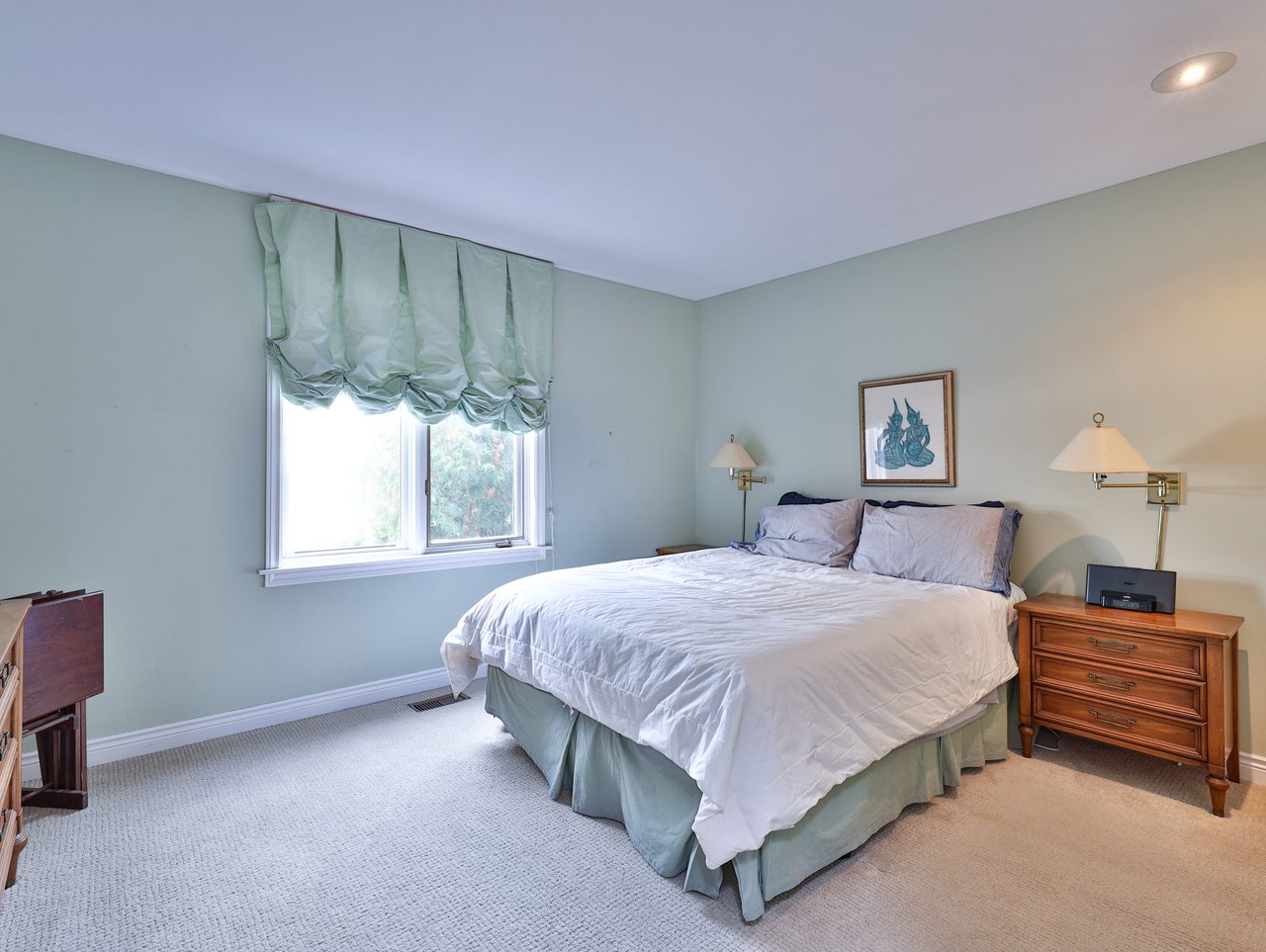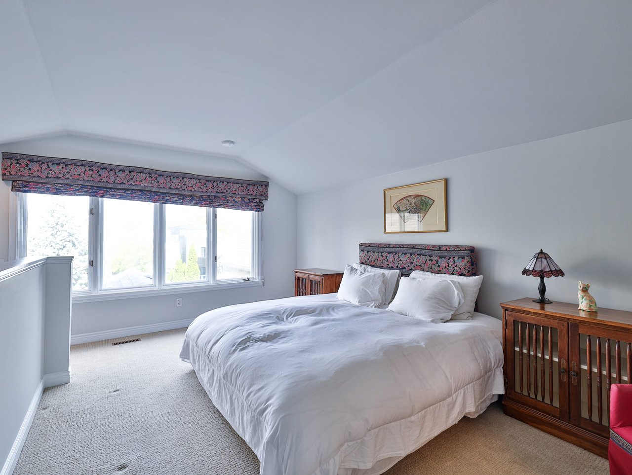 The private Master Suite features broadloom, a picture window outfitted with custom blinds overlooking the rear gardens, an expansive walk-in closet and a 6-piece ensuite.