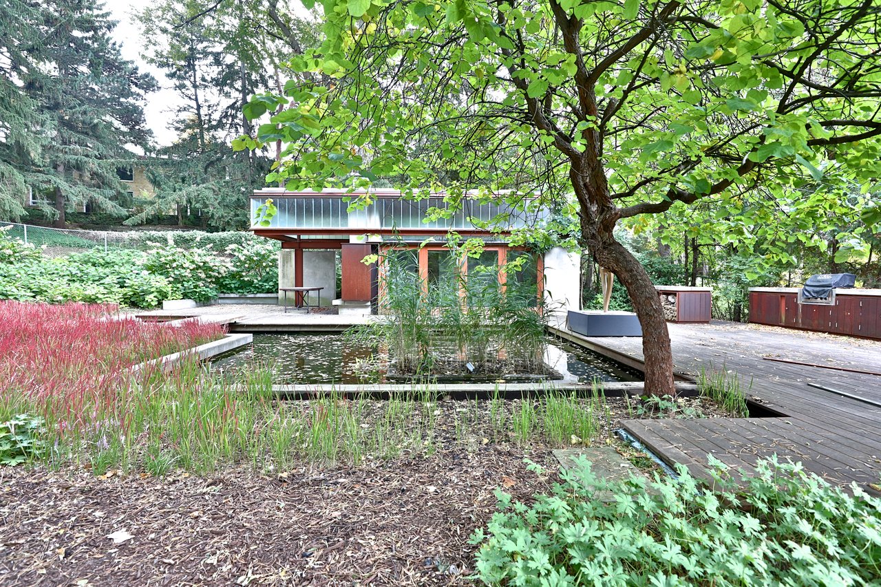 Sold. One of a kind and rarely offered. 1 acre on ravine on cachet oxbow. Build your dream home up to 16,000 square feet as per architect's presentation, subject to set backs/conservation authority. Seller makes no representation as to buildable area or size. Alternately, enjoy this sprawling updated open concept contemporary california bungalow. Reflection koi pool with fountain architecturally significant cabana. Updated kitchen with granite counter tops, multiple fireplaces.Walkouts,lower level master bedroom boasts 6 piece ensuite. Zen-like manicured lush gardens. Steps to renowned schools, ttc and shops.