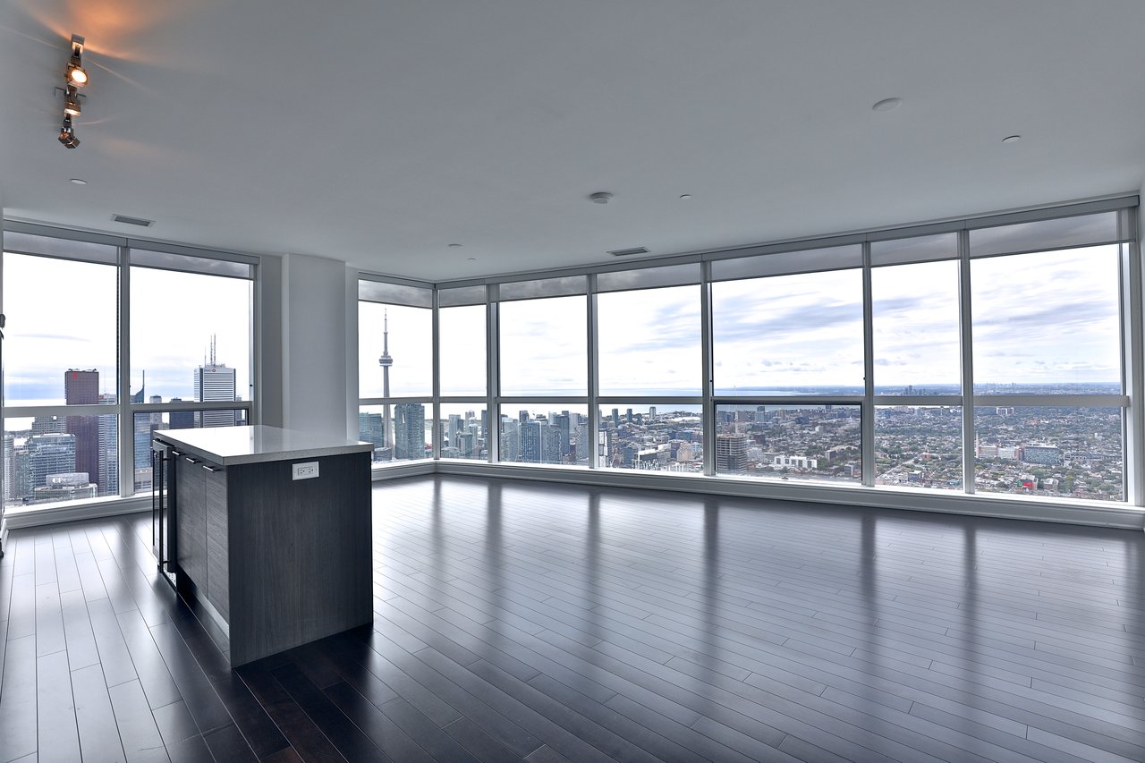 Sold: Live on top of the world at the Coveted Aura! Lively and convenient Yonge Street enclave. Right in the heart of the city. Exquisite 2 bedroom plus den and 2 bath suite. One of only 6 units on the private and sought after 75th floor. The most spectacular unobstructed south and west views. Look out onto the CN Tower and Lake Ontario. Designer finishes throughout. Fabulous Kitchen with stainless steel appliances and centre island. Floor-to-ceiling windows from all principal rooms. Move in and enjoy the views! Hotel like amenities with games room, theatre room, terrace, party room, billiards room and concierge.