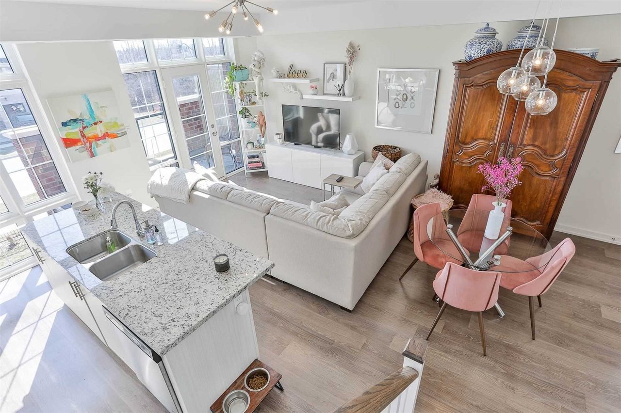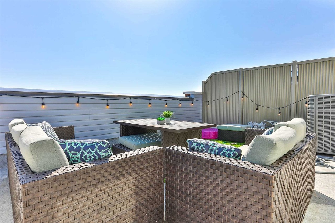 Upgraded Pristine And Serene Townhome Nested In The Heart Of Souffville. Highly Desirable Community Of Cardinal Point. Over 1,200 Square Feet Of Living Space. Unobstructed Picturesque Views From Towering Windows, Balcony And Rooftop Terrace. Thousands Spent With Smooth Ceilings, Granite Counter In Kitchen And Upgraded Flooring. Fabulous Open Concept Design. Entertainers Dream Terrace With Bbq Gas Hook Up. Underground Parking and Xl Locker.