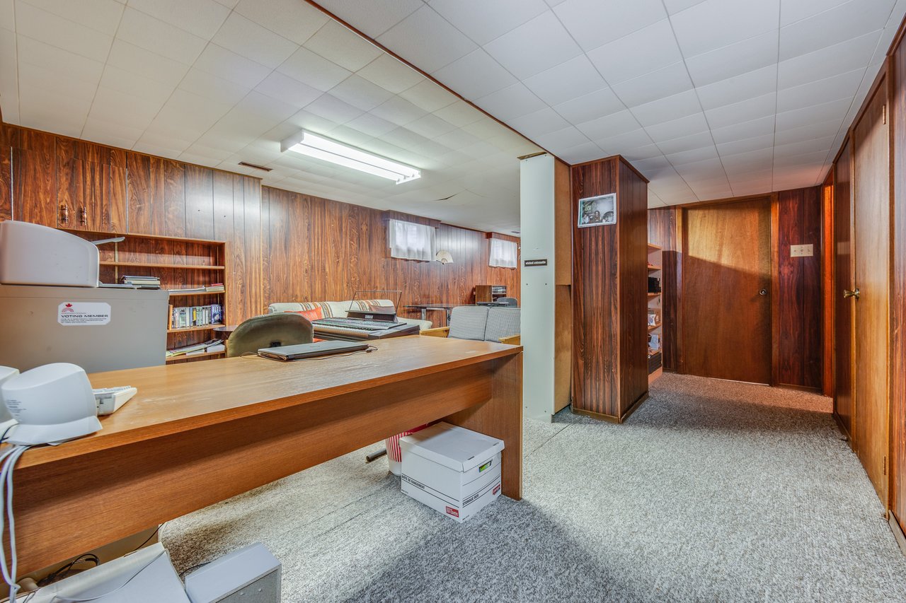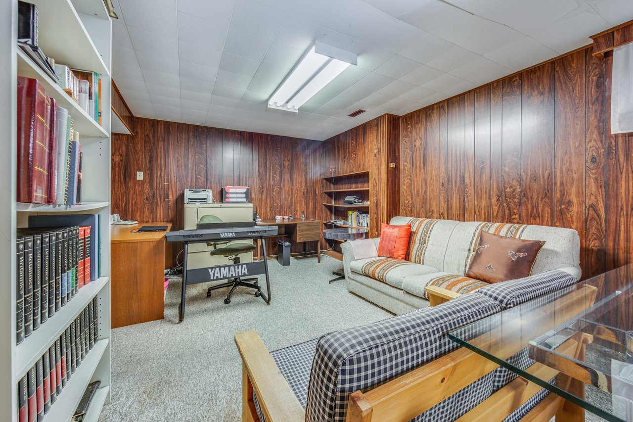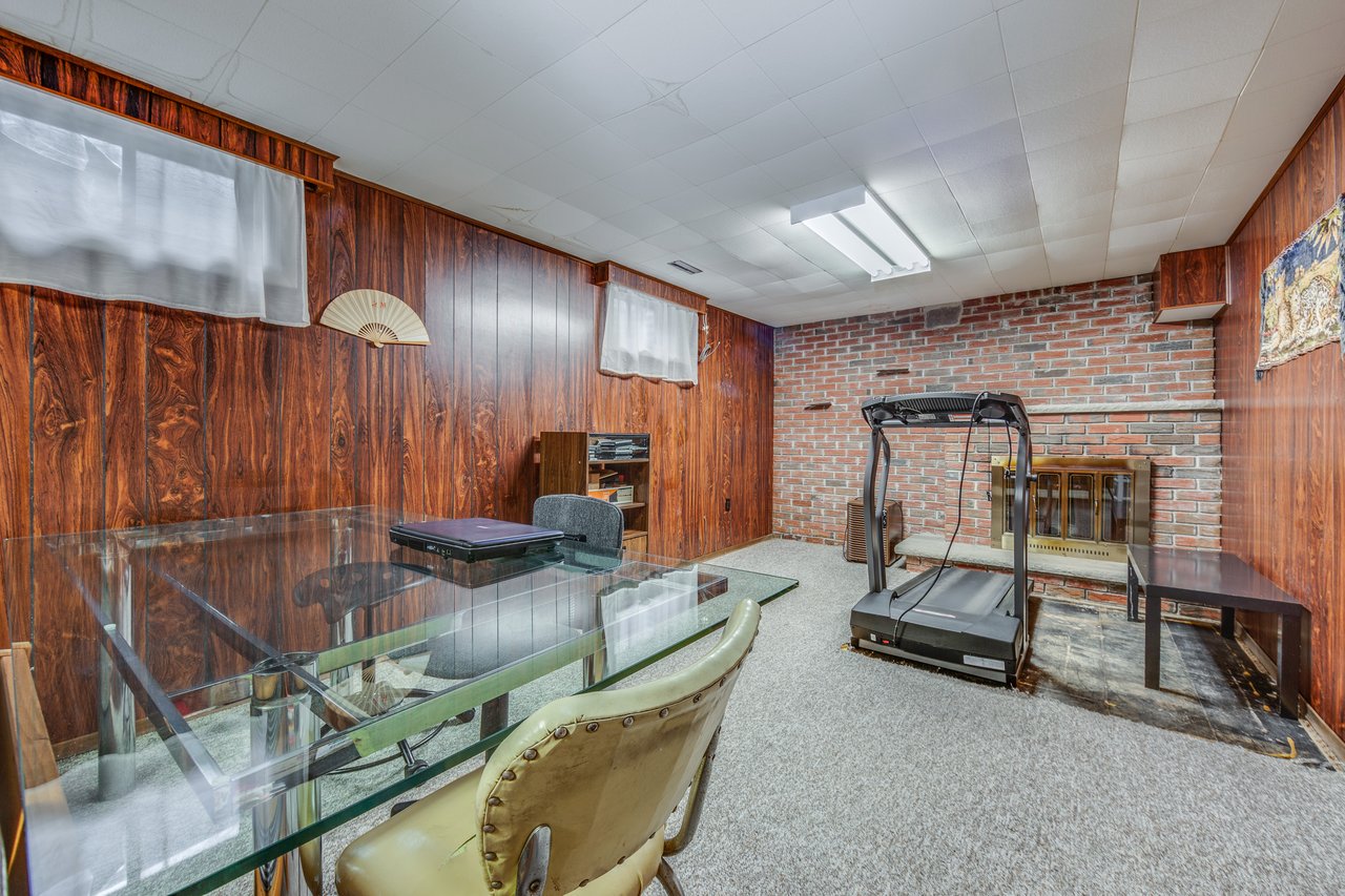 The fully finished basement features a large recreational space, wood burning fireplace, powder room, storage area and laundry room (washing machine 2017).