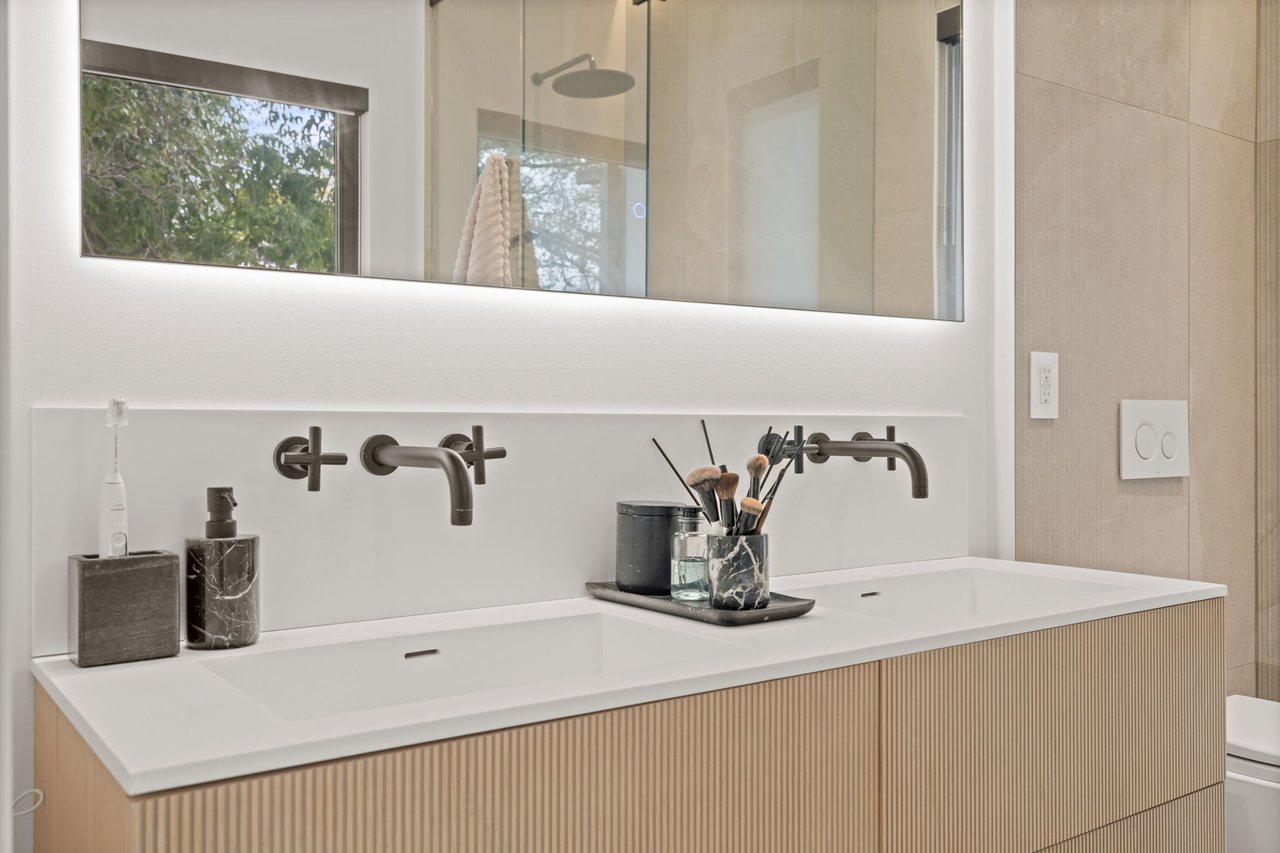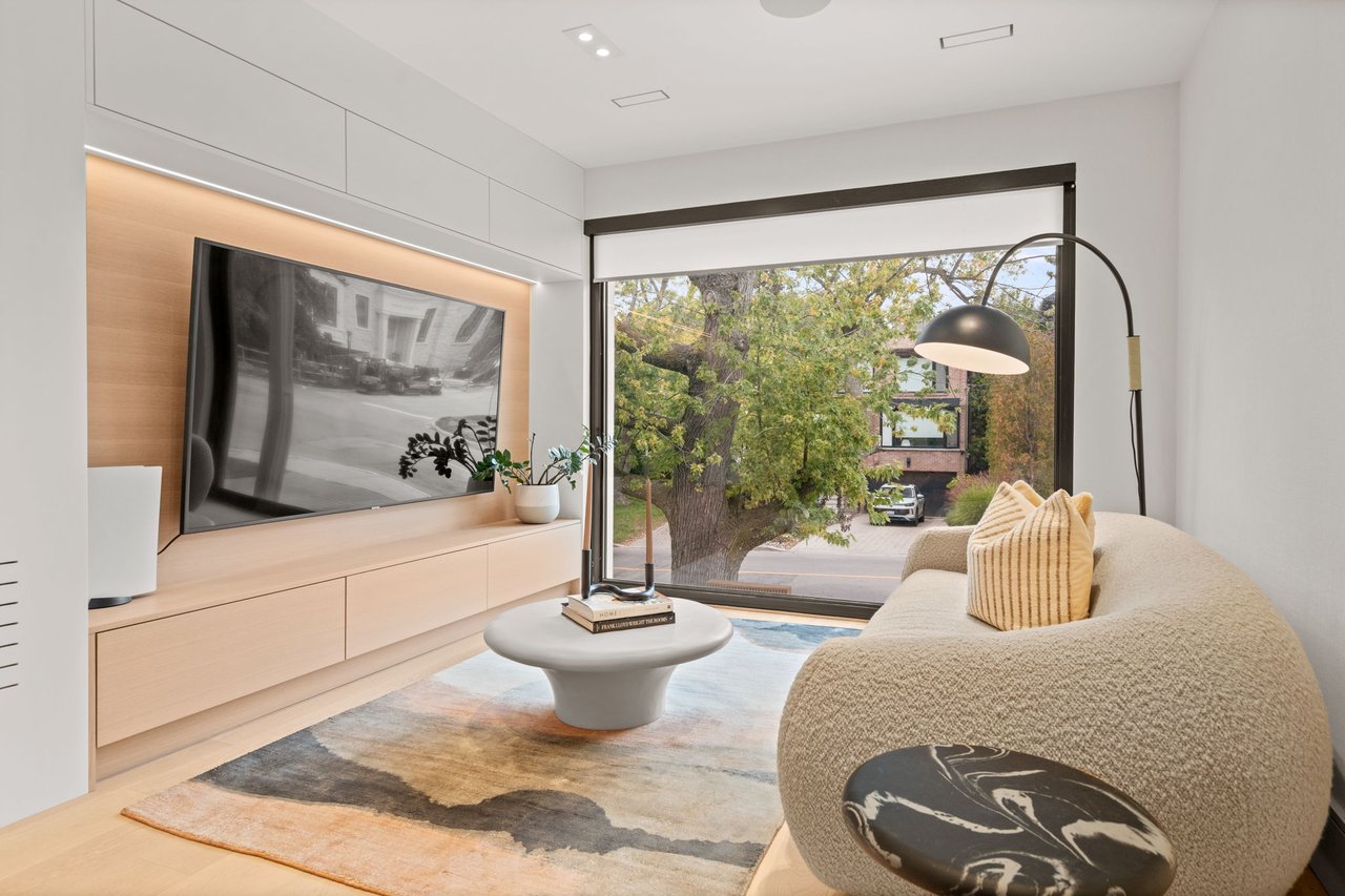 An Architectural Standout In Midtown Toronto. Built By Its Owner To An Exceptional Standard Of Quality, Craftsmanship & Discerning Taste. Offering 3,665 Sqft. Of Luxurious Living Space Above Grade, Including A Magnificent Walk-Out Basement. Every Detail Hand-Selected, Every Choice Intentional. An Inspired Blend Of Scandinavian & Contemporary Design, With Solid White Oak Accents, Artful Ambient Lighting & Luxury Finishes At Every Turn. Control 4 Automation & In-Ceiling Speakers Throughout. Expansive & Bright Principal Spaces Feature Floor-to-Ceiling Windows, Oak Floors & Bespoke Built-Ins, Anchored By Elegant Floating Stairs. Family Room W/ Linear Gas Fireplace, Travertine Surround, Integrated Seating & Walk-Out To Terrace Overlooking Rear Gardens. Chef-Inspired Custom Kitchen Features Premium Wolf/Miele Appliances & Centre Island W/ Waterfall-Edge Porcelain Countertop. Cozy Loft Lounge W/ Oversized Windows Overlooking Front Gardens. Stylish Primary Suite W/ Soaring Vaulted Ceilings, Private Balcony, Walk-In Closet W/ Illuminated Built-Ins & Spa-Quality Ensuite W/ Curbless Shower, Freestanding Tub & Heated Porcelain Floors. All Bedrooms W/ Custom Built-In Closets & Ensuites W/ Heated Floors. Ground-Level Basement Boasts Impressive Scale For Entertaining, Floor-to-Ceiling Windows, Fully-Outfitted Bar, Linear Gas Fireplace W/ Stone Surround, Walk-Out To Backyard, Nanny Suite & 3-Piece Bathroom. Backyard Retreat Features Covered Outdoor Living Room W/ Built-In Coyote Barbecue, Stone Countertops, Integrated Seating & TV Niche. Mature Tree Cover & Privacy Fences W/ Custom Lighting. Striking Exterior Presence W/ Fluted Wood Paneling, Custom Wood Soffits & Fascia, 12-Ft. Solid Mahogany Front Door, Heated Steps & Curated Lighting. Prime Location In Midtown's Most Coveted Family Neighbourhood, Minutes To Yonge-Eglinton/Leaside Amenities, Sherwood Park, Top-Rated Schools & Public Transit.