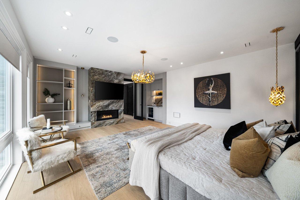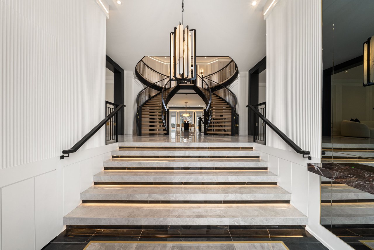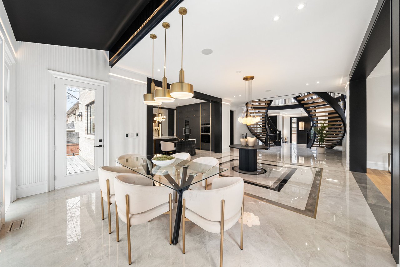 This exceptional newly built luxury residence offers nearly 10,000 sq ft of beautifully finished living space on a prestigious south-facing 68' x 150' lot, delivering remarkable scale, craftsmanship, and architectural elegance. Featuring 5+1 oversized bedrooms, each with its own private ensuite and walk-in closet, the home is designed for ultimate comfort, privacy, and modern family living. Grand ceiling heights create an extraordinary sense of space with 10-ft ceilings on the main level, 9-ft ceilings on the second floor, and a breathtaking 14-ft grand foyer, while the 11-ft lower level provides a bright and expansive walk-up basement ideal for entertaining. The striking natural limestone facade is framed by six custom columns inspired by the U.S. Capitol, with hand-crafted capitals that create a distinguished presence rarely seen in Toronto. The home's symmetrical design and incorporation of the Golden Ratio create a sense of balance, harmony, and timeless elegance throughout. Designed for exceptional indoor-outdoor living, the spectacular backyard retreat features a heated saltwater concrete pool, pergola, outdoor BBQ area, and professionally landscaped grounds. Additional exterior highlights include a heated driveway, extensive stone walkways, and a rare 3-car garage. Inside, the home is fully equipped with a Control4 smart lighting system, in-floor heating (where applicable), and a sophisticated whole-home audio system with surround sound in the family room, lower level entertainment space, and theatre, plus wiring for backyard audio. Additional luxury amenities include four fireplaces, a jacuzzi, dry and steam sauna, and a stunning primary suite retreat. Conveniently located just minutes from York Mills Subway Station, Highway 401, and within close proximity to Toronto's top private schools, shops, and amenities. A rare offering in one of the city's most prestigious communities.