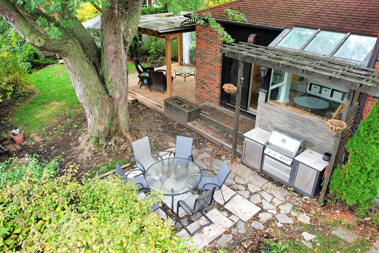 SOLD. Welcome to 155 Parkhurst Blvd, a beautifully renovated and meticulously maintained 3-bedroom, 2-bathroom home in the heart of South Leaside. Set on an expansive lot with a rare private drive at the back, this residence blends timeless character with modern comfort. A bright breakfast nook overlooks the open-concept family room, creating a warm and inviting hub for everyday living. Formal living and dining rooms offer elegant spaces for entertaining, while the family room's walkout opens to a covered deck with an outdoor kitchen featuring a built-in grill and fridge. Beyond, a landscaped south-facing garden and patio set the stage for effortless summer gatherings. Upstairs, three generous bedrooms provide comfort and flexibility, highlighted by a remarkable primary bathroom with heated floors for a spa-like retreat. The lower level extends the living space with a finished recreation room and built-in shelving. Two additional rooms, each with closets, can be used as a study, guest room, home office, or playroom. A small mudroom adds practical storage, and a side entrance provides direct access to the basement, enhancing functionality. Additional highlights include a large attic for storage and a custom-built cedar shed. Ideally located within the coveted Bessborough school district and steps to local shops, cafes, and parks, this home presents a rare opportunity to enjoy family living in one of Leaside's most desirable neighbourhoods.
