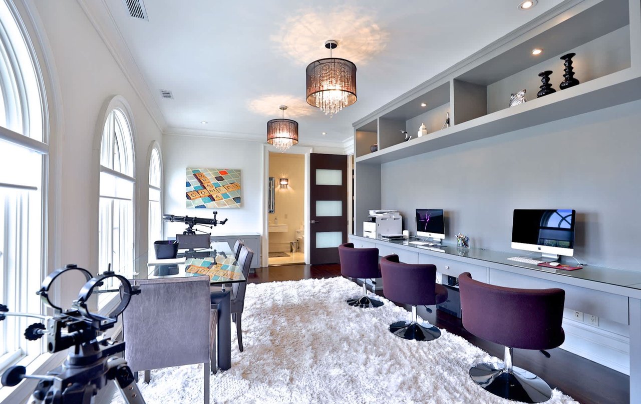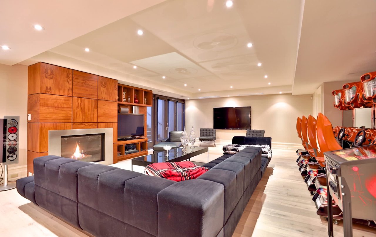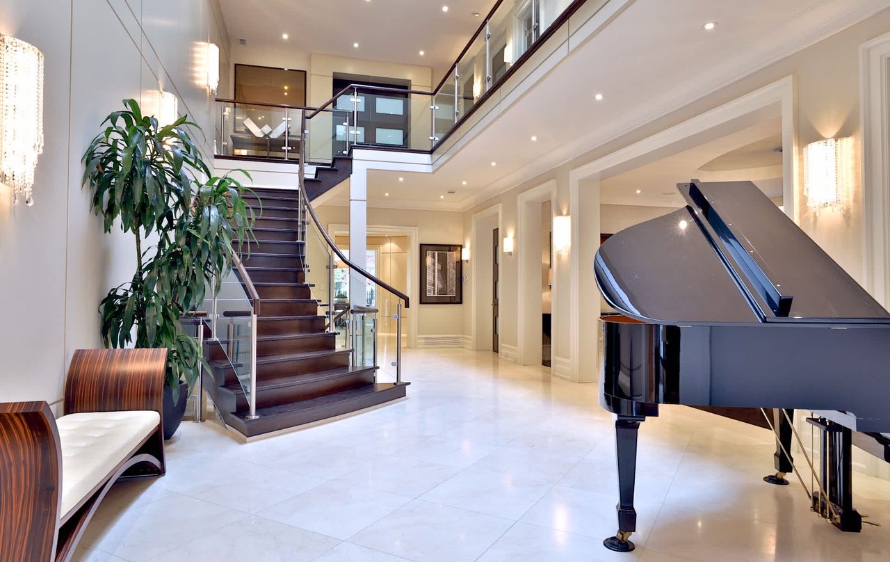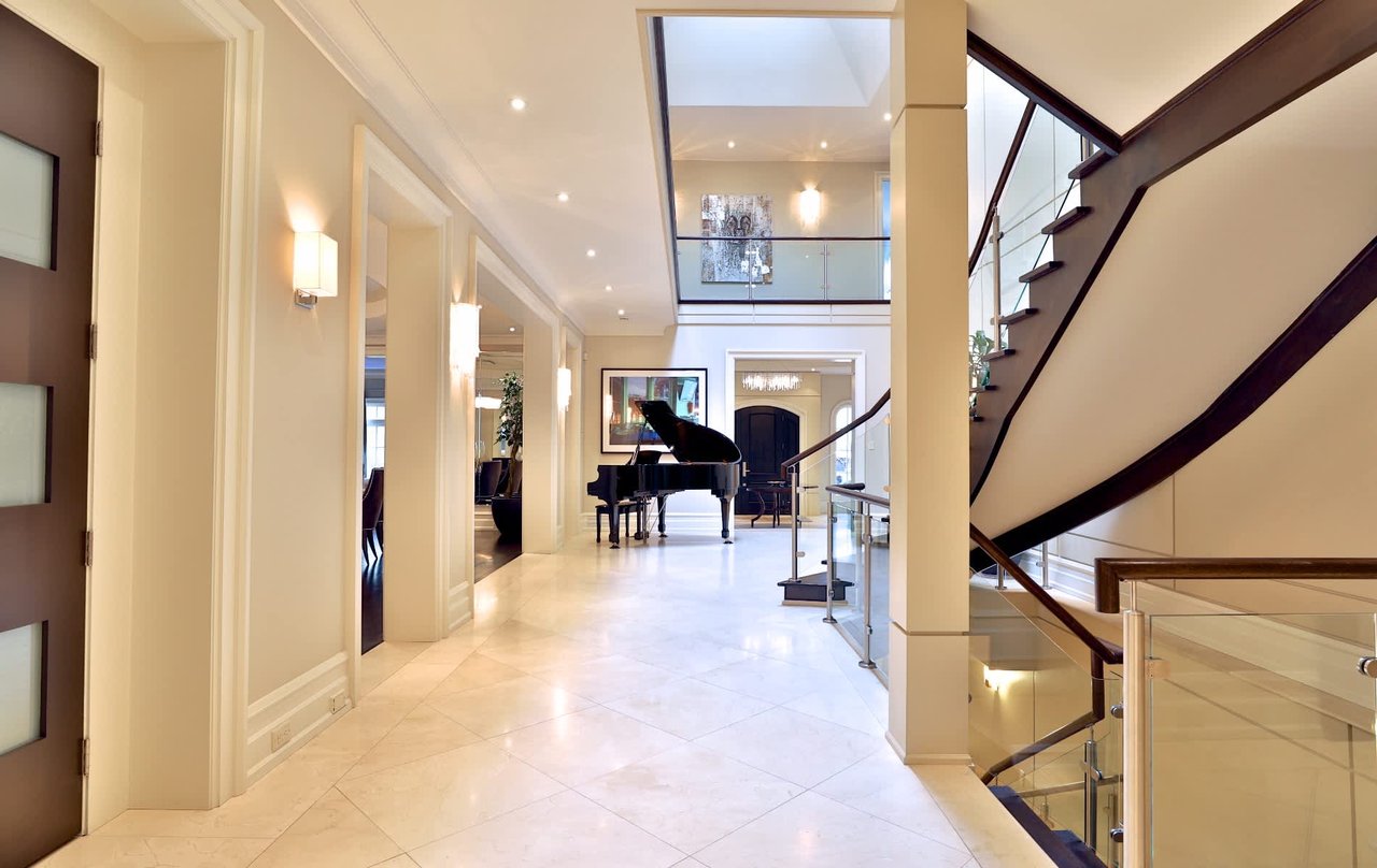 Gated Palatial Bridle Path Estate With Contemporary Palette. 13,900 Square Feet Living Area Of Unparalleled Luxury Appointments Through Out. Grand Salon. Outstanding Custom Reveals & Millwork and Unique Ceiling Designs. Glass Railings. Exotic Wood & Stone Finishes. Rotunda Entry With Curved Pocket Doors To Chef Inspired Kitchen, U-Shaped Centre Island. Elevator. Master bedroom With Vaulted Ceiling, Sitting Room, 8 Piece, His & Hers Walk In Closets & Walk-Out. 5 Star Resort Like Lush Oasis With Stone Terrace, Pool, Cabana, Pergola, Sport Court, & Outdoor Entertaining Areas. Lower Level with Hardwood, Enclosed Wine & Tasting Room, Nanny Suite, Exercise Room, Spa, Recreation Room, Wet Bar, Games Room & Tiered Home Theatre. Jungle Gym.