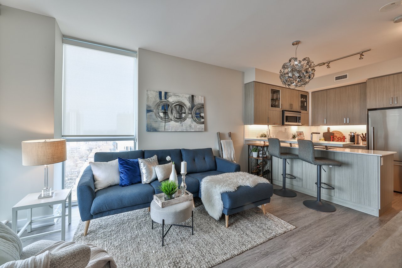 Exquisite And Most Desirable Corner Suite At The Barrington! Enjoy Breathtaking Views From 3 Balconies! Highly Sought After Split Bedroom Des With Thousands Spent On Upgrades And One Of A Kind Features. Sunfilled Living Room. Floor-To-Ceiling Win. Upgraded Kit With Peninsula Island, Quartz Counter Top And Breakfast Bar. Primary Retreat Boasts Walk-In Closet, Lux 4-Piece Ensuite And Balcony. Steps To Ttc, Shops, Wychwood Barns, Parks & Renowned Schools.