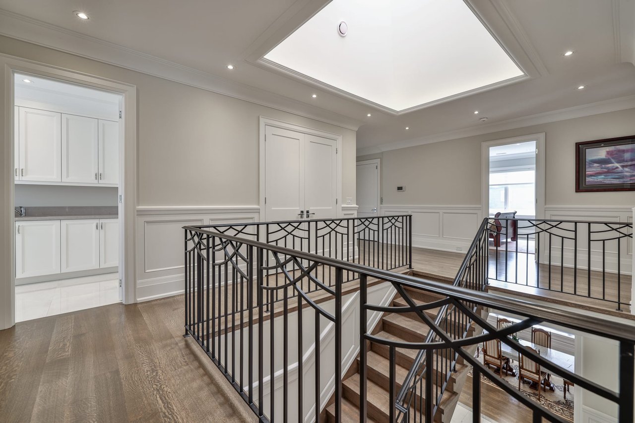 SOLD. Stunning 3-Year New Custom Residence Crafted By Andre Custom Homes For Its Owner. Exuding The Utmost In Elegance & Luxury Finishings. Situated In Highly Sought After St. Andrews Locale. Dramatic Curb Appeal With Indiana Limestone Facade. Sprawling Principal Rooms, Gourmet Chef's Kitchen Boasts Center Island With Quartz Counter Top, Top of the Line Appliances, Open To Breakfast Area And Family Room. Walk-Out To The Expansive Wood Deck and Sun Filled Backyard. Paneled Main Floor Library With Custom Built-In. Intricate Ceiling Designs Throughout. Opulent Primary Retreat With 9 Piece Ensuite, Steam, Massage Jets and Heated Floors, His and Hers Walk-in Closets. Elevator to All Levels. Hated Walk-Up Lower Level Boasts Two Additional Bedrooms, Rec Room With Built-in Bar, Gas Fireplace. Separate Media Room Which Can Be Completed as Home Theatre. Steps To Renowned Schools, Parks And Ttc.