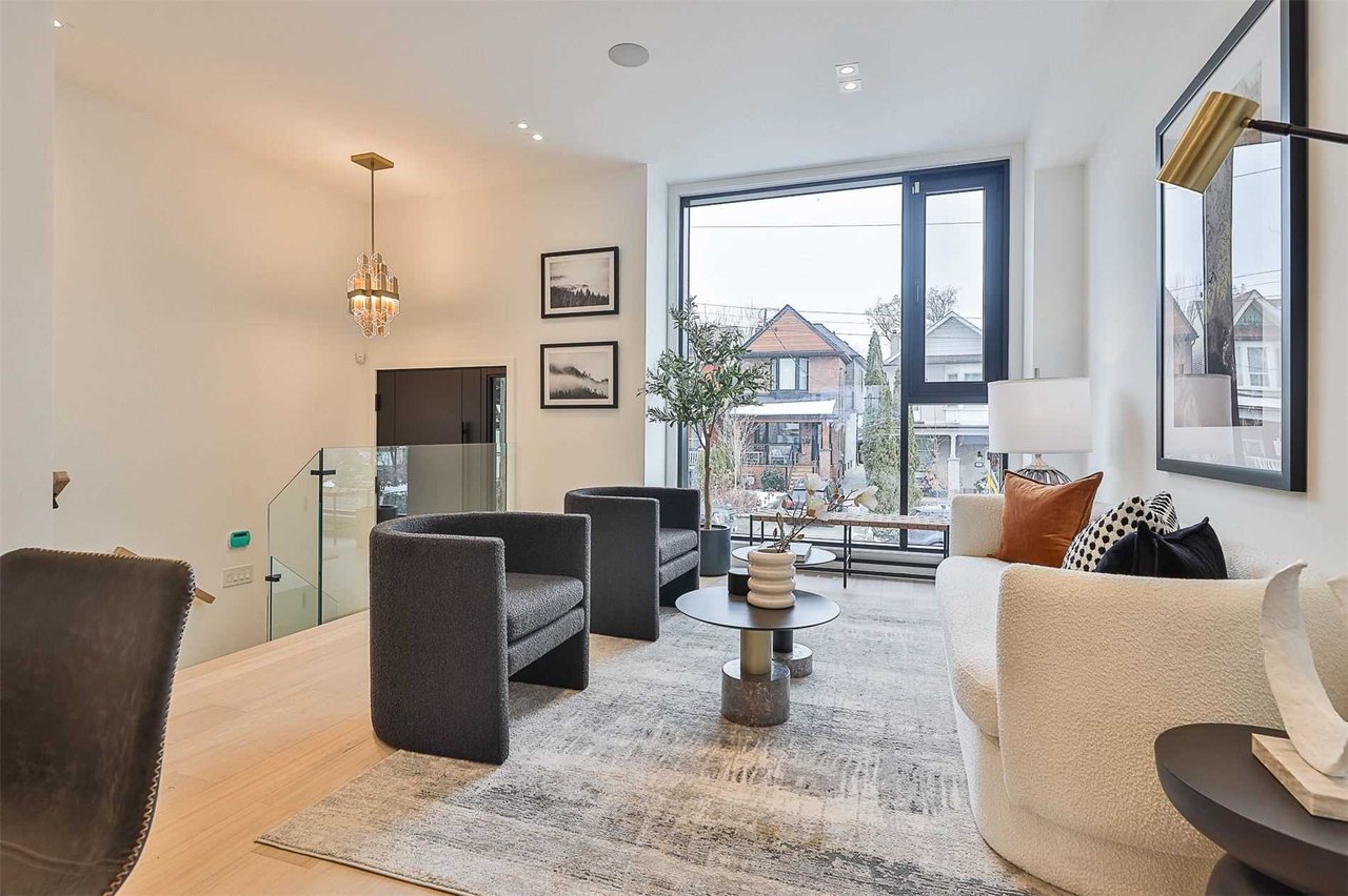 Outstanding Architectural Custom Res! Nestled In Most Sought After Leslieville. Designed For Entertaining And Family Living At Its Finest. Fabulous Custom Millwork And Soaring Ceilings. Wide Plank Oak Hw. Painstaking Attention To Detail. Open Concept Main Flr W/Chef Inspired Kitchen, Top Of The Line Appliances And Exquisite Waterfall Island W/ Expansive Breakfast Bar. Opulent Prim Bdrm W/Lavish 8Pc Ens, Backyard Vistas And Walk-In Clst. W/Up L/L Boasts Rec Rm, Wet Bar, Nanny Room, Wine Display And Access To The Garage. Enjoy The Lush Backyard Oasis W/ Professional Landscaping And Greenery.