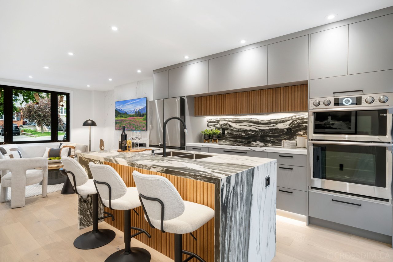 Discover refined luxury living in the heart of Toronto. This stunning semi-detached residence has been meticulously renovated from top to bottom, showcasing thoughtful architectural design and premium finishes throughout. The spectacular chef's kitchen features a striking wall of glass overlooking a private garden retreat, a large centre island with waterfall countertop and breakfast bar, and well-designed prep and cooking stations. Custom cabinetry is complemented by Samsung stainless steel appliances. The beautifully finished lower level offers a spacious recreation room, dedicated home office nook, a stylishly renovated three-piece bathroom, and a generous laundry room. Ideally located just steps to the vibrant shops and acclaimed restaurants of Mount Pleasant. A truly exceptional home - must be seen to be appreciated.