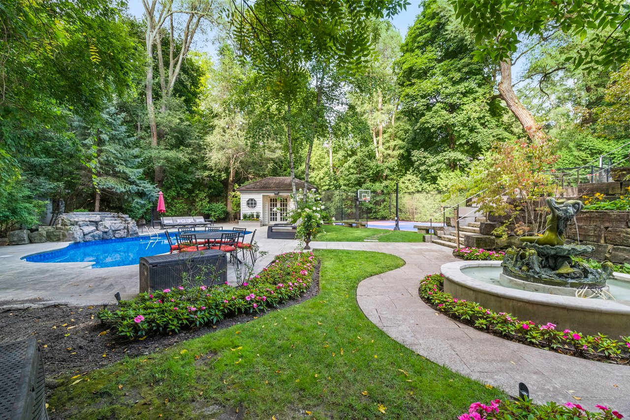 Welcome to 11 Ormsby Crescent, a landmark estate in the heart of Forest Hill proper - one of Toronto's most exclusive and distinguished enclaves. Set on a spectacular, estate-sized property, this extraordinary residence offers over 7,000 sq. ft. of impeccably designed living space, where timeless architecture meets uncompromising modern luxury. Situated on a desirable family, friendly crescent and masterfully renovated to the highest standards, this 6+1 bedroom home exudes sophistication at every turn. Grand principal rooms, refined detailing, and curated designer finishes create an atmosphere of understated elegance, while seamlessly integrating contemporary comfort and functionality. Every element has been thoughtfully considered, resulting in a residence that is both impressive in scale and intimate in feel. The grounds are nothing short of breathtaking-an ultra-private, resort-inspired sanctuary that ranks among the most exceptional in the city. Backing directly onto the iconic Toronto Belt Line Trail and enveloped by a lush ravine setting, this cinematic outdoor oasis has been featured in film and enjoyed by high-profile celebrities. The rear pies out to over 100 feet and is designed for elevated entertaining and serene everyday living, it showcases multiple bespoke lounge areas, statement fire features, serene English Gardens and waterfalls, a saltwater pool, hot tub, and a full-scale sports court-all framed by exquisite landscaping and total privacy. Perfectly positioned just moments from the refined boutiques and cafes of Forest Hill Village, and within close proximity to Toronto's most prestigious public and private schools, this address offers a lifestyle defined by prestige, convenience, and discretion. A rare offering of this calibre-11 Ormsby Crescent is a true statement of luxury, legacy, and distinction.