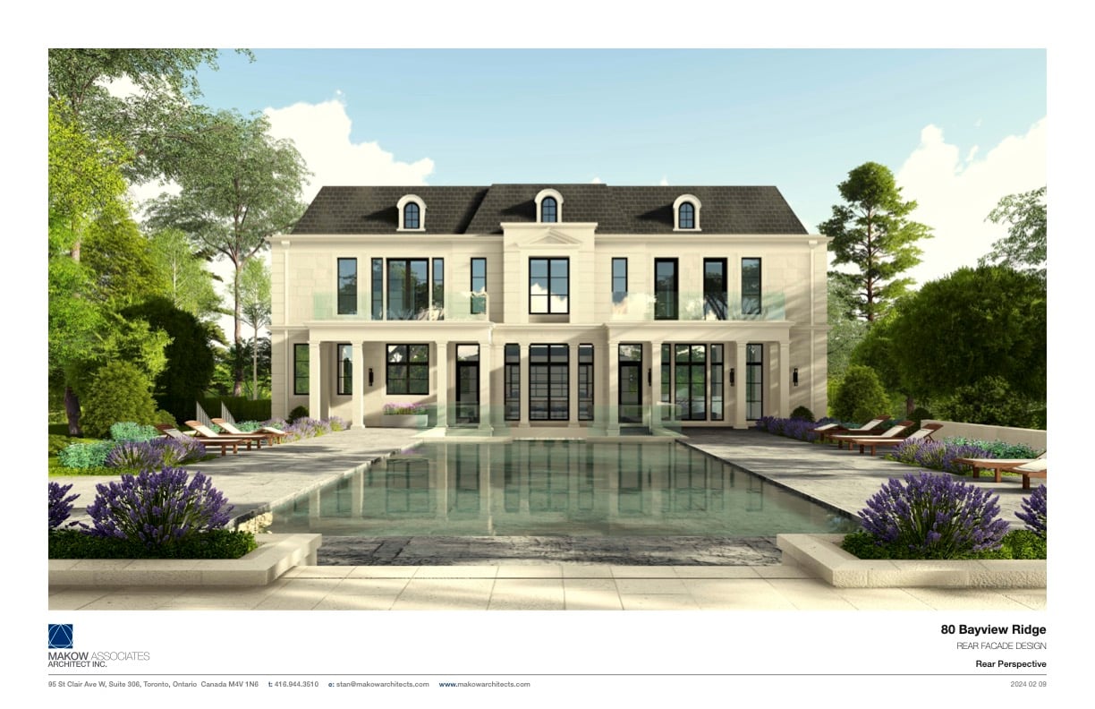 Prestige. Privacy. Possibility. 80 Bayview Ridge - A Signature Estate Opportunity In One Of Toronto's Most Coveted Enclaves. Set On An Extraordinary 100 X 250 Ft Estate-Style Lot, This Remarkable Property Offers Exceptional Scale, Mature Greenery, And A Beautifully Maintained In-Ground Pool Framed By Lush Perennial Gardens-An Oasis Of Complete Privacy In The Heart Of Bayview Ridge. The Existing Residence, Measuring 7,715 Sq. Ft., Is Warm, Inviting, And Comfortably Livable. Sunlit Interiors Feature Multiple Skylights And Five Fireplaces, Enhancing Both Charm And Ambiance. Generous Principal Rooms Include A Richly Appointed Wood-Panelled Library With Fireplace, A Classic Living Room, A Formal Dining Room Adorned With Luxurious Silk Wall Finishes, And A Grand Family Room With Skylight, Fireplace, And Walk-Out To The Serene Backyard. The Walk-Out Lower Level Elevates Everyday Living With A Dedicated Theatre Room, Spacious Recreation And Entertainment Areas, And Flexible Spaces Ideal For Hosting, Relaxing, Or Accommodating Extended Family. A Three-Car Garage And The Estate's Exceptional Lot Size Complete This Distinguished Offering. While The Home Is Perfectly Enjoyable As-Is, The Value Lies In The Land And Redevelopment Potential. Architectural Plans For A New Luxury Residence Of Over 18,000 Sq. Ft. Are Available, And The Building Permit Is Already Approved And Ready, Making This A Truly Turnkey Opportunity For A Future Signature Estate. An Exceptional Bayview Ridge Address Where Privacy, Timeless Elegance, And Limitless Opportunity Converge-Whether You Choose To Live, Enhance, Or Build New.