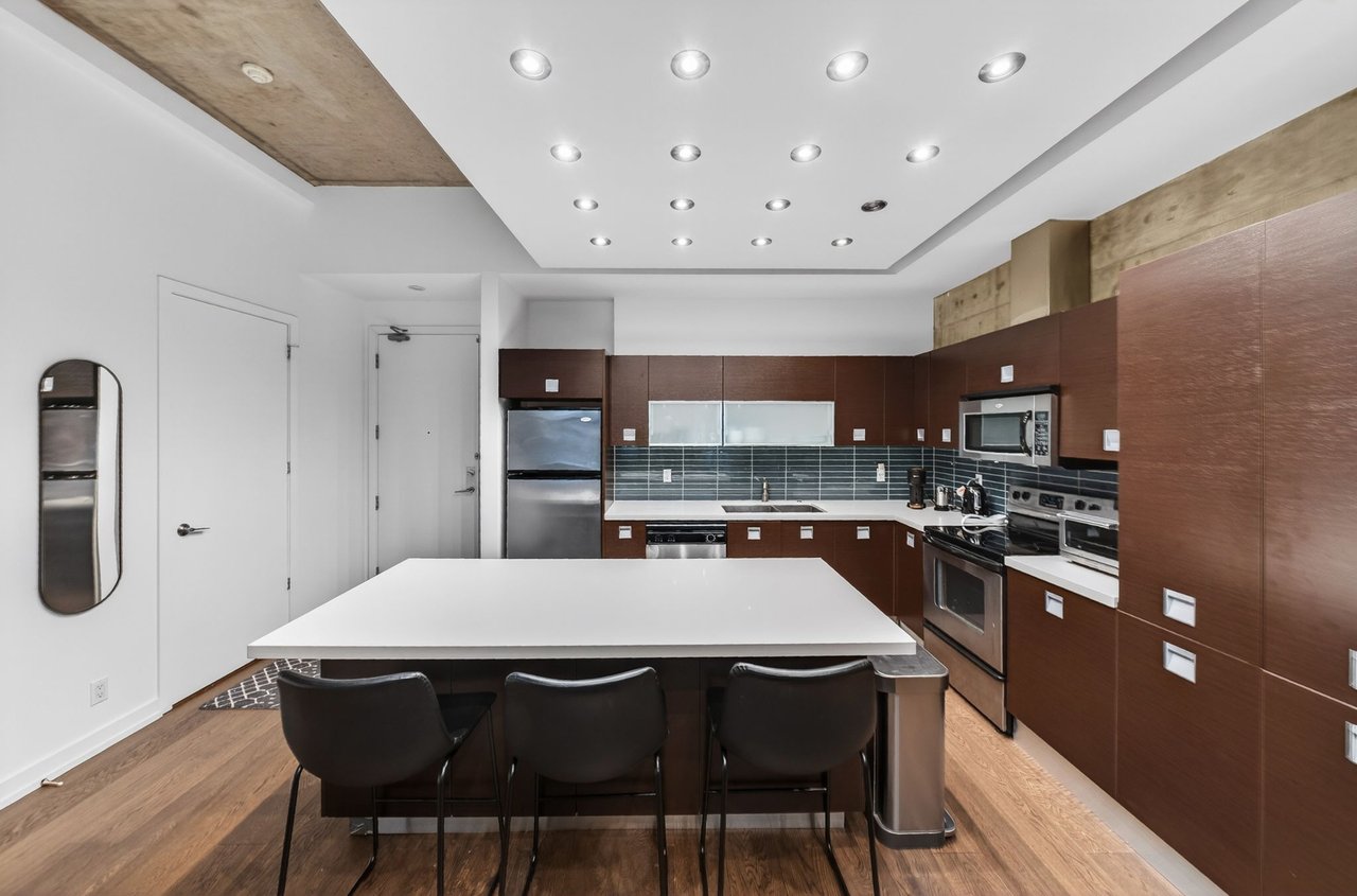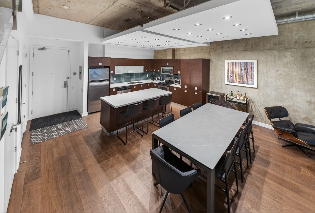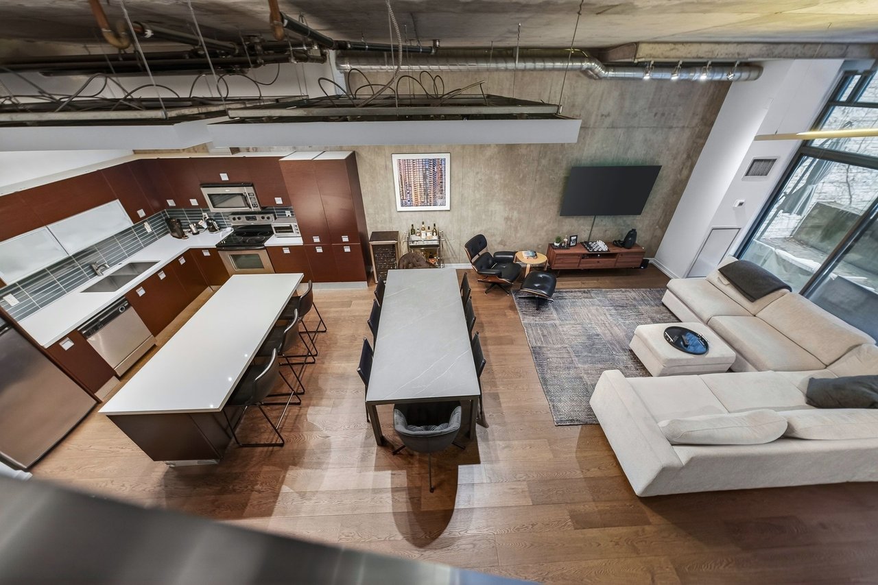 Ultra-Modern 2-Storey Loft Residence In The Heart Of Vibrant King West. Offering Over 1,600 Sq Ft Of Refined Living Space, This 2-Bedroom Plus Expansive Den, 3-Bathroom Home Blends Sophisticated Design With Effortless Comfort. Soaring 11-Foot Ceilings On The Main Floor, Dramatic Floor-To-Ceiling Windows With Custom Treatments, And Striking Exposed Concrete Accents. The Designer Italian Scavolini Kitchen Is The Centerpiece Of The Home, Complete With An Oversized Island, Premium Finishes, And Seamlessly Integrated European Lighting Throughout. A Statement Chandelier And Custom Floating Ceiling Features With Ambient Lighting Elevate The Space Even Further. A Luxurious Primary Suite Featuring An Exceptional Ensuite Retreat. The Massive Den Offers Incredible Flexibility-Perfect As A Home Office, Media Lounge, Or Additional Guest Space. Extend Your Living Outdoors To A Private 460 Sq Ft Terrace And Garden Oasis, Complete With Lighting. An Unbeatable Downtown Location Just Steps To Your Favorite Cafés, Restaurants, And Shops.