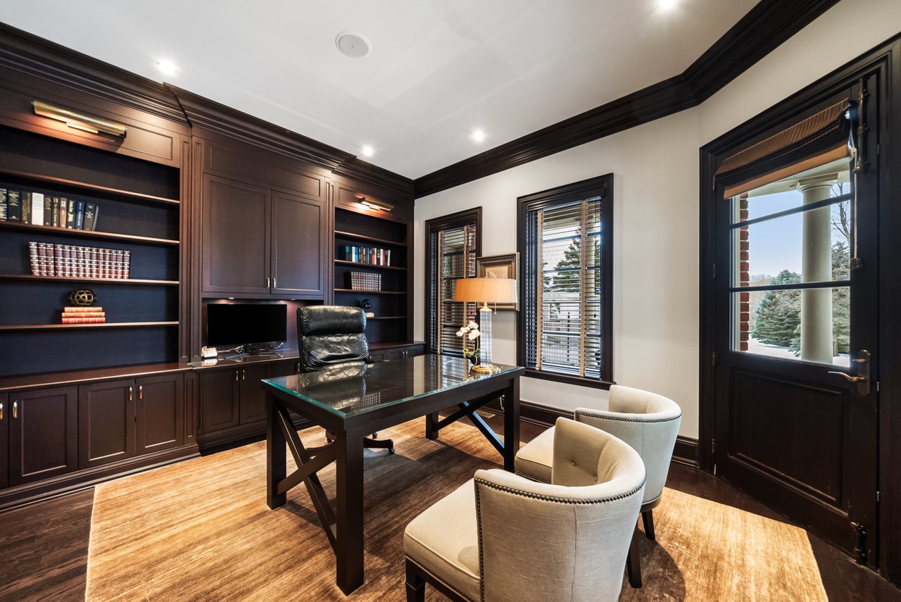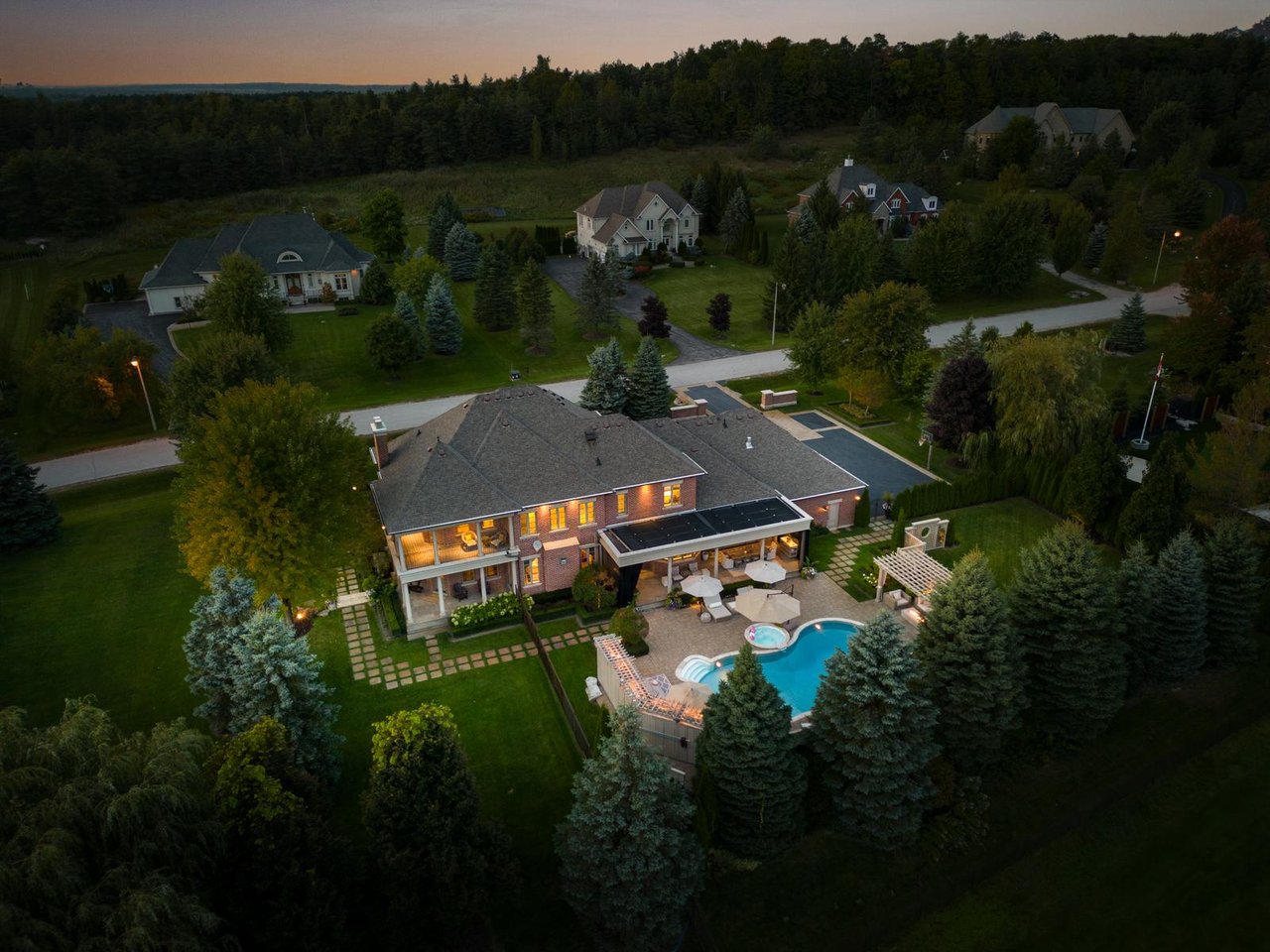 Welcome To "The Sandy Ridge Estate", An Extraordinary Custom-Built Residence Set Within One Of The Area's Most Prestigious Estate Communities. Privately Positioned On Over 1 Acre Of Meticulously Landscaped Grounds, This Distinguished Home Offers An Exceptional Balance Of Architectural Presence, Refined Interiors, And Serene Surroundings. From The Moment Of Arrival, The Residence Conveys A Sense Of Quiet Grandeur, With A Timeless Exterior That Seamlessly Transitions Into Gracious, Light-Filled Interiors. Classic Detailing, Finely Crafted Millwork, Coffered Ceilings, And Exquisite Finishes Define The Principal Rooms, Creating An Atmosphere Of Understated Sophistication. The Home's Living Spaces Are Anchored By Beautifully Appointed Fireplaces, Each Adding Warmth, Intimacy, And Architectural Definition, Perfect For Both Relaxed Family Living And Formal Entertaining. The Chef-Inspired Culinary Space Is Thoughtfully Designed As Both A Showpiece And A Gathering Place, Featuring Custom Cabinetry, Refined Finishes, And Top-Tier Appliances Curated For Elevated Living. The Upper Level Offers Generously Proportioned Bedrooms Each Boast Private Ensuites, Providing Comfort And Privacy For Family And Guests Alike. The Primary Suite Is A Serene Retreat, Thoughtfully Designed With Spa-Inspired Amenities, Refined Detailing, And A Sense Of Tranquility Rarely Found In Luxury Residences. The Fully Finished Lower Level Extends The Home's Living Space, Offering Versatile Entertaining Options Including A Well-Appointed Bar, Second Full Kitchen, Glass-Enclosed Wine Room, Games Area, And An Additional bedroom With Ensuite-Perfect For Extended Family Or Guests. Outdoors The Sandy Ridge Estate Unfolds As A Private Oasis, Featuring A Sparkling Resort-Style Inground Pool, Expansive Stone Terraces, A Covered Porch For Alfresco Dining, And A Premium Outdoor Kitchen. Mature Landscaping Frames The Property, Creating Both Beauty And Privacy. This Residence-Statement Of Style, Comfort, And Sophistication.