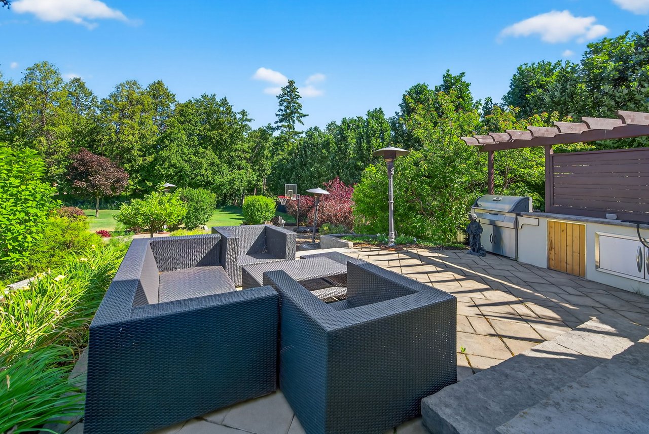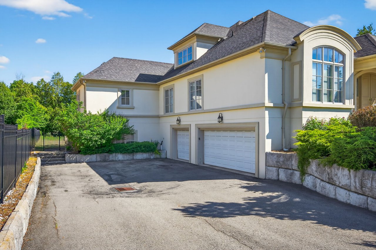 Rarely available executive bungalow backing directly onto Thornhill Golf Club, nestled in one of Thornhill's most prestigious neighbourhoods. Designed by renowned architect Lorne Rose, this gated residence offers a perfect blend of luxury, privacy, and timeless elegance on an impressive 100' x 300' mature, treed lot that could serve as a canvass for your future dream estate.A circular drive leads to a grand entrance, where a dramatic double-height foyer sets the tone for the home's soaring ceiling heights and opulent finishes throughout. The main level features expansive principal rooms, ideal for both grand entertaining and comfortable family living. The stunning Great Room boasts impressive vaulted ceilings and a gas fireplace. Gourmet kitchen w/granite counters and a centre island, flows seamlessly into a bright breakfast area overlooking the private, landscaped grounds. A formal dining room with elegant coffered ceilings provides the perfect setting for hosting. The luxurious primary bedroom suite is a true retreat, featuring a coffered ceiling, serene garden views, his-and-hers walk-in closets, and a marble 6-piece ensuite. Two additional bedrooms on the main level share a semi-ensuite bath. A sprawling second-floor loft offers incredible versatility as a fourth bedroom, family's family room, or office and features a 4pc ens. wet bar, vaulted ceilings, and a charming Juliette balcony. The walk-out lower level is designed for full-scale living and entertaining, featuring a spectacular bar open to the recreation room, a large office with built-ins, an additional bedroom, sauna, spacious mudroom, and abundant storage. Outdoors, the breathtaking backyard oasis showcases mature landscaping, golf course views, an outdoor cooking area, basketball court, and plenty of green space with room for a pool and cabana. With dramatic architectural details, and unparalleled setting, this remarkable bungalow lifestyle is truly one-of-a-kind.