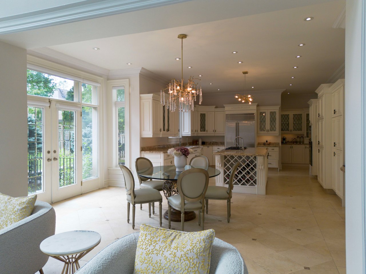 LEASED. Unmissable Elegance: A French-Inspired Masterpiece in Toronto’s Premier Neighborhood. Situated in a tranquil and upscale enclave of Toronto, this residence is a masterclass in French Chateau architecture, making an indelible impression from the very first glance. It's sprawled across a generous 80x269-foot lot.The home greets you with intricate ceiling details and a luxurious marble staircase, setting the tone for the exemplary design elements found throughout the property. Family Room that Breathes: Commanding a 20-foot ceiling height, the family room is both open and inviting. Expansive windows frame stunning views of the meticulously landscaped backyard. A Kitchen Fit for Entertaining: The expansive main kitchen is equipped with a full scullery and a versatile butler’s pantry that features additional stove and sink—ideal for hosting and food preparation. Master Bedroom: A Haven of Luxury: A cut above the rest, the master suite comes complete with a private balcony. An accompanying seven-piece bathroom turns the suite into a personal sanctuary. Versatile Guest Accommodations:The residence offers the flexibility of two separate In-Law Suites, providing a private and comfortable stay for guests or extended family. A Class Apart: More than just its stunning aesthetics, this property is a tribute to fine craftsmanship and meticulous attention to detail. It merits in-person visits to truly grasp the quality it offers.