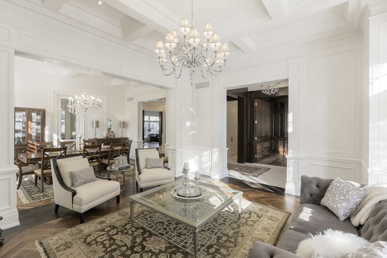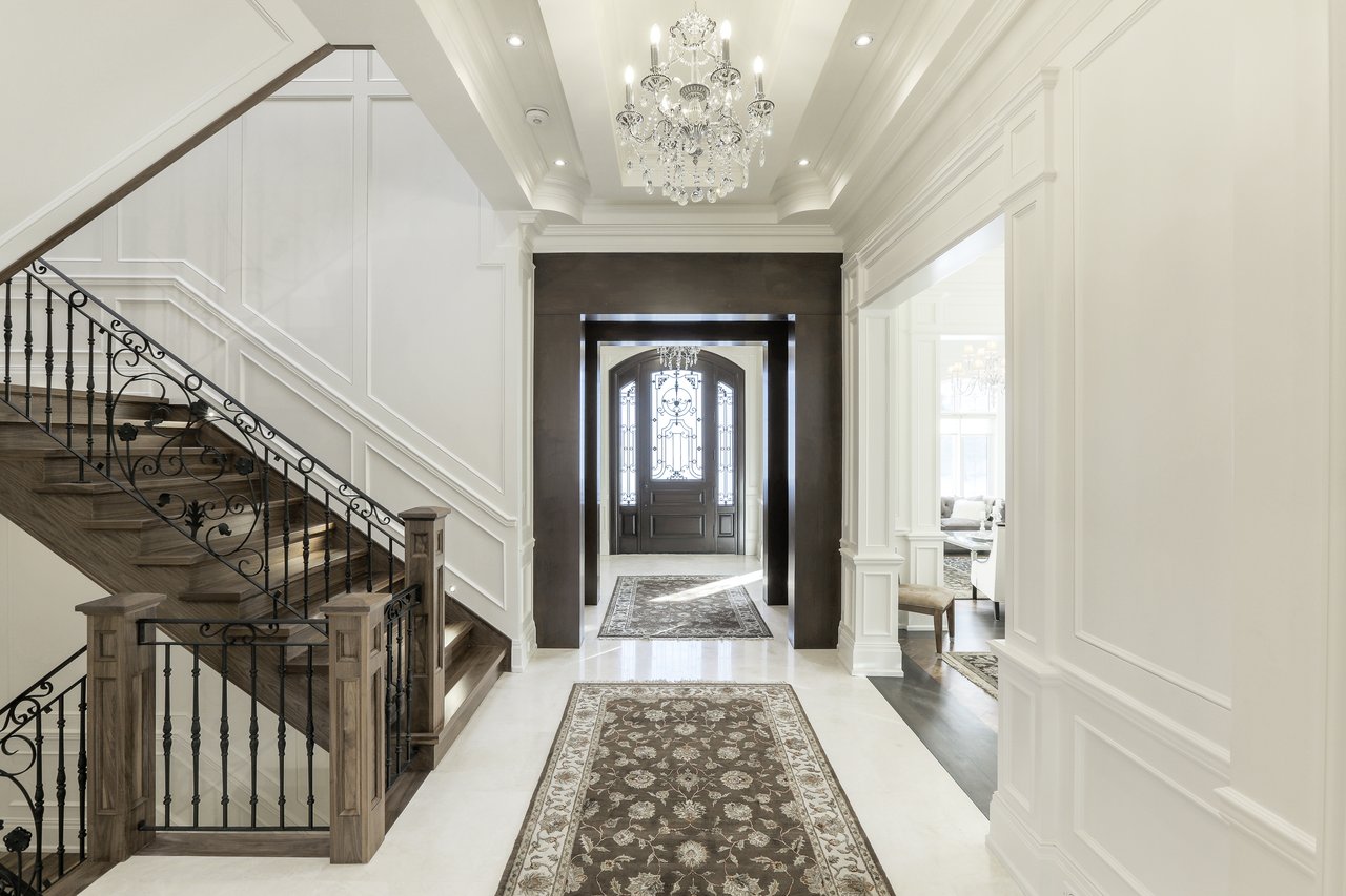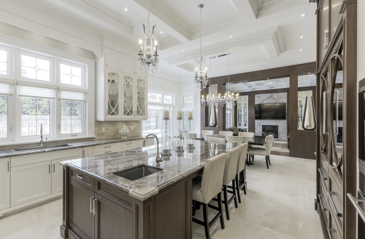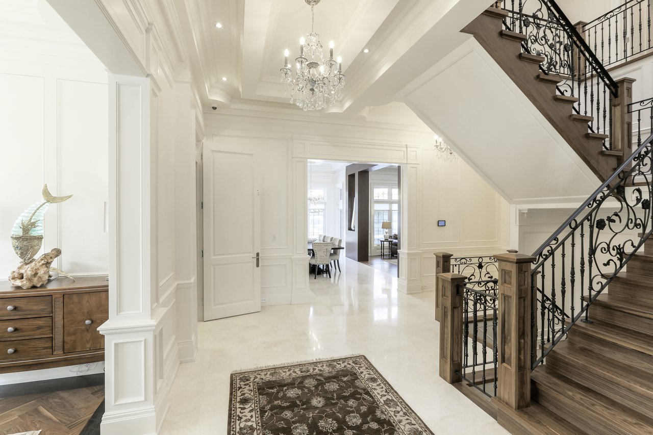 SOLD. Masterfully Crafted Blending Traditional Elegance & Contemporary Sleek Finishes. Boasting Over 10,850 Square Feet Of Opulent Living Space. Most Sought After Crescent. Towering Windows, Soaring Ceilings. Spectacular Stone Work & Mill Work. Imported Marble. No Detail Overlooked. Smart Home System. Gourmet Kitchen With Expansive Breakfast Area & Walkout. Heated Floors On Main, Lower & All Ensuites. Main Floor In-Law Suite. Master Bedroom With Wet Bar, Sitting Room, Balcony & 9 Piece Book Matched Marble Ensuite Living Room The Living Room, Entered Through A Recessed Paneled Archway Off Of The Foyer, Features A Herringbone Walnut Engineered Hardwood Floor With A Contrasting Border, Floor-To-Ceiling Recessed Paneled Walls, Recessed Paneled Entryways, Extensive Detailed Millwork, Majestic Gas Fireplace With A Pre-Cast Floor-To-Ceiling Mantle With Decorative Corbels, Pot Lights, Plaster Crown Molding, Custom Designed Ceiling And Leaded Windows Boasting Custom Blinds Looking Out To The Front Garden. This Area Of The Home Also Features A Recessed Paneled Entryway Leading To The Dining Room. Dining Room The Formal Dining Room Features A Herringbone Walnut Engineered Hardwood Floor With A Contrasting Border, Recessed Paneled Entryways Off Of The Main Hall And Living Room, Floor To Ceiling Recessed Paneled Walls, Plaster Crown Molding, A Glass Swing Door Opening Into The Servery, Built-In Speakers, Pot Lights, Chandelier, Leaded Windows Boasting Custom Blinds Overlooking The Side Gardens And A Custom Designed Ceiling. Servery The Servery Features Heated Custom Grinded Marble Floor, Custom Solid Wood Bella Kitchen Cabinetry, A Glass Swing Door Leading To The Dining Room, Ample Storage, Pot Lights, Plaster Crown Molding, Stainless Steel Under Mount Sink, Marble Counter Top, A Marble Subway Tile Backsplash, Pantry Area, Under Valence Lighting, Glass Front Display Cabinets, An Archway Opening Onto The Kitchen, A Silhouette Double Door Bar Refrigerator And A Window Outfitted With Custom Blinds Overlooking The Side Gardens. Butlers Kitchen The Butlers Kitchen Features Heated Custom Grinded Marble Floor, Pot Lights, Marble Countertop, Marble Subway Tile Backsplash, A Window Outfitted With Custom Blinds Overlooking The Side Gardens, A Stainless Steel Under Mount Sink With A Vegetable Sprayer And A 4 Burner Wolf Gas Cook Top With A Professional Hood Fan. Kitchen The Gourmet State Of The Art Bella Kitchen, Entered Through A Recessed Paneled Archway Off Of The Main Hall And Open In Design To The Breakfast Area, Features Heated Custom Grind Marble Floor, Custom Designed And Crafted Solid Wood Cabinetry With Dovetailing, Double Stack Cabinets With Open And Closed Glass Shelving, Self Closing Drawers, Lazy Susan Cabinet, Recycling And Garbage Pull Out Drawer, Spice Racks, Marble Counter Tops, Marble Subway Tile Backsplash, Pot Lights, Plaster Crown Molding, Custom Ceiling Design, Pendant Lights, Under Valence Lighting, Pot Filler, A Leaded Window Outfitted With Custom Blinds Overlooking The Rear Gardens, A Dual Bowl Stainless Steel Under Mount Sink With A Retractable Faucet, Insinkerator, Glass Front Display Cabinets, A Custom Built-In Desk Area With Cork Board Backsplash, A Convenient Contrasting Walnut Center Island With Built-In Table, An Additional Stainless Steel Under Mount Vegetable Sink, Central Vacuum Kick Sweep And A High Capacity Professional Hood Fan. In-Law Suite The In-Law Suite Features A 3-Piece Ensuite, Walnut Engineered Hardwood Floor, Multi-Tiered Plaster Crown Molding, Pot Lights, A Light Fixture, A Double Closet With Custom Built Ins And Windows Boasting Custom Blinds Overlooking The Rear Gardens. The 3-Piece Ensuite Features Heated Marble Floors, Plaster Crown Molding, A Light Sconce, Mirror, Pot Lights, A Window Outfitted With Custom Blinds Overlooking The Side Gardens, Custom Vanity With An Under Mount Sink And Marble Countertop, Mirror And An Expansive Seamless Glass Shower With A Marble Surround, Soap Box And Basket Weave Marble Detailing. Master Suite The Master Bedroom Suite, Entered Through Double Doors, Features An Anteroom, Herringbone Walnut Engineered Hardwood Floor With An Intricate Oak Inlay, Pot Lights, Plaster Crown Molding, A Backlit Walnut Accent Wall, Alarm Pad, Floor-To-Ceiling Recessed Paneled Walls, A Luxurious 9-Piece Marble Ensuite Bath, Dressing Rooms With Custom Built-Ins And A Sitting Room. The Master Bedroom Sitting Room Features Walnut Engineered Hardwood Floor, Pot Lights, Plaster Crown Molding, Built In Speakers, A Light Fixture, A Large Double Sided Gas Fireplace With A Marble Surround, Double Doors Leading To The Balcony Overlooking The Rear Gardens, Two Openings Leading To The Bedroom And A Custom Built-In Mirrored Storage Cabinet. The Bedroom Features Walnut Engineered Hardwood Floor, Pot Lights, Rope Lighting, A Chandelier, Plaster Crown Molding, Vaulted Ceilings, A Large Double Sided Gas Fireplace With A Marble Surround A Window Outfitted With Custom Blinds Overlooking The Rear Gardens, Barrel Ceiling Detail And A Walnut And Mirrored Accent Wall. The Wet Bar Features Custom Cabinetry, Mirrored Front Cabinets, Soft Closing Drawers, Marble Countertop, Glass Tile Backsplash, A Stainless Steel Under Mount Sink And A Magic Chef Bar Refrigerator. The 9-Piece Ensuite Bath Features A Heated Book Matched Epoxy Finished Marble Floor, Large Crystal Chandelier, Custom Furniture Style Walnut Vanity With “His” And “Hers” Under Mount Sinks With Marble Countertops, Italian Gessi Faucets, Custom Integrated Mirror, Ample Storage, Pot Lights, Built-In Speakers, Plaster Crown Molding, Central Vacuum Kick Sweep, Light Sconces, Free Standing Deep Soaker Acryline Air Jet Tub With An Italian Gessi Faucet, Window Backdrop With Custom Blinds Overlooking The Rear Gardens, An Oversized Seamless Glass Shower With A Marble Surround, Marble Bench, Marble Soap Box, French Drain, Led Waterfall, Handheld Faucet, Rain Forest Shower Head And Body Jets And A Separate Steam Shower