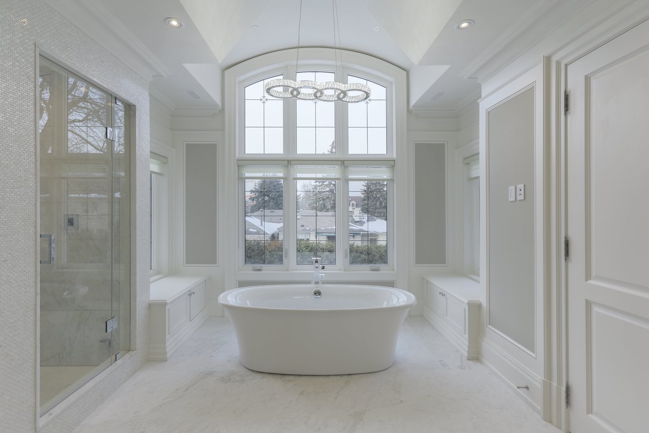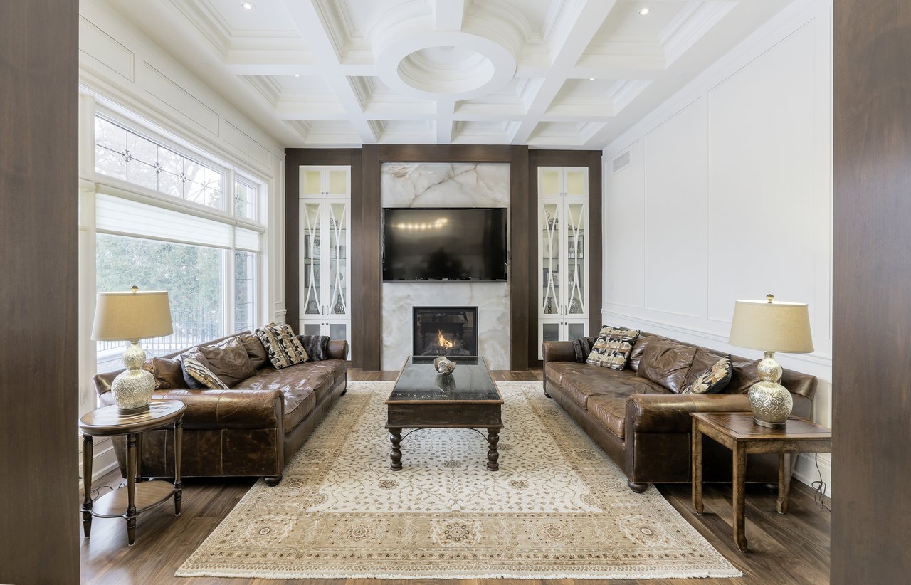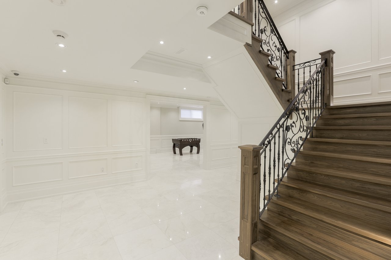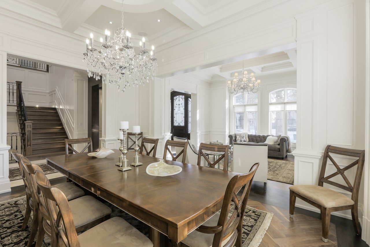 SOLD. Masterfully Crafted Blending Traditional Elegance & Contemporary Sleek Finishes. Boasting Over 10,850 Square Feet Of Opulent Living Space. Most Sought After Crescent. Towering Windows, Soaring Ceilings. Spectacular Stone Work & Mill Work. Imported Marble. No Detail Overlooked. Smart Home System. Gourmet Kitchen With Expansive Breakfast Area & Walkout. Heated Floors On Main, Lower & All Ensuites. Main Floor In-Law Suite. Master Bedroom With Wet Bar, Sitting Room, Balcony & 9 Piece Book Matched Marble Ensuite Living Room The Living Room, Entered Through A Recessed Paneled Archway Off Of The Foyer, Features A Herringbone Walnut Engineered Hardwood Floor With A Contrasting Border, Floor-To-Ceiling Recessed Paneled Walls, Recessed Paneled Entryways, Extensive Detailed Millwork, Majestic Gas Fireplace With A Pre-Cast Floor-To-Ceiling Mantle With Decorative Corbels, Pot Lights, Plaster Crown Molding, Custom Designed Ceiling And Leaded Windows Boasting Custom Blinds Looking Out To The Front Garden. This Area Of The Home Also Features A Recessed Paneled Entryway Leading To The Dining Room. Dining Room The Formal Dining Room Features A Herringbone Walnut Engineered Hardwood Floor With A Contrasting Border, Recessed Paneled Entryways Off Of The Main Hall And Living Room, Floor To Ceiling Recessed Paneled Walls, Plaster Crown Molding, A Glass Swing Door Opening Into The Servery, Built-In Speakers, Pot Lights, Chandelier, Leaded Windows Boasting Custom Blinds Overlooking The Side Gardens And A Custom Designed Ceiling. Servery The Servery Features Heated Custom Grinded Marble Floor, Custom Solid Wood Bella Kitchen Cabinetry, A Glass Swing Door Leading To The Dining Room, Ample Storage, Pot Lights, Plaster Crown Molding, Stainless Steel Under Mount Sink, Marble Counter Top, A Marble Subway Tile Backsplash, Pantry Area, Under Valence Lighting, Glass Front Display Cabinets, An Archway Opening Onto The Kitchen, A Silhouette Double Door Bar Refrigerator And A Window Outfitted With Custom Blinds Overlooking The Side Gardens. Butlers Kitchen The Butlers Kitchen Features Heated Custom Grinded Marble Floor, Pot Lights, Marble Countertop, Marble Subway Tile Backsplash, A Window Outfitted With Custom Blinds Overlooking The Side Gardens, A Stainless Steel Under Mount Sink With A Vegetable Sprayer And A 4 Burner Wolf Gas Cook Top With A Professional Hood Fan. Kitchen The Gourmet State Of The Art Bella Kitchen, Entered Through A Recessed Paneled Archway Off Of The Main Hall And Open In Design To The Breakfast Area, Features Heated Custom Grind Marble Floor, Custom Designed And Crafted Solid Wood Cabinetry With Dovetailing, Double Stack Cabinets With Open And Closed Glass Shelving, Self Closing Drawers, Lazy Susan Cabinet, Recycling And Garbage Pull Out Drawer, Spice Racks, Marble Counter Tops, Marble Subway Tile Backsplash, Pot Lights, Plaster Crown Molding, Custom Ceiling Design, Pendant Lights, Under Valence Lighting, Pot Filler, A Leaded Window Outfitted With Custom Blinds Overlooking The Rear Gardens, A Dual Bowl Stainless Steel Under Mount Sink With A Retractable Faucet, Insinkerator, Glass Front Display Cabinets, A Custom Built-In Desk Area With Cork Board Backsplash, A Convenient Contrasting Walnut Center Island With Built-In Table, An Additional Stainless Steel Under Mount Vegetable Sink, Central Vacuum Kick Sweep And A High Capacity Professional Hood Fan. In-Law Suite The In-Law Suite Features A 3-Piece Ensuite, Walnut Engineered Hardwood Floor, Multi-Tiered Plaster Crown Molding, Pot Lights, A Light Fixture, A Double Closet With Custom Built Ins And Windows Boasting Custom Blinds Overlooking The Rear Gardens. The 3-Piece Ensuite Features Heated Marble Floors, Plaster Crown Molding, A Light Sconce, Mirror, Pot Lights, A Window Outfitted With Custom Blinds Overlooking The Side Gardens, Custom Vanity With An Under Mount Sink And Marble Countertop, Mirror And An Expansive Seamless Glass Shower With A Marble Surround, Soap Box And Basket Weave Marble Detailing. Master Suite The Master Bedroom Suite, Entered Through Double Doors, Features An Anteroom, Herringbone Walnut Engineered Hardwood Floor With An Intricate Oak Inlay, Pot Lights, Plaster Crown Molding, A Backlit Walnut Accent Wall, Alarm Pad, Floor-To-Ceiling Recessed Paneled Walls, A Luxurious 9-Piece Marble Ensuite Bath, Dressing Rooms With Custom Built-Ins And A Sitting Room. The Master Bedroom Sitting Room Features Walnut Engineered Hardwood Floor, Pot Lights, Plaster Crown Molding, Built In Speakers, A Light Fixture, A Large Double Sided Gas Fireplace With A Marble Surround, Double Doors Leading To The Balcony Overlooking The Rear Gardens, Two Openings Leading To The Bedroom And A Custom Built-In Mirrored Storage Cabinet. The Bedroom Features Walnut Engineered Hardwood Floor, Pot Lights, Rope Lighting, A Chandelier, Plaster Crown Molding, Vaulted Ceilings, A Large Double Sided Gas Fireplace With A Marble Surround A Window Outfitted With Custom Blinds Overlooking The Rear Gardens, Barrel Ceiling Detail And A Walnut And Mirrored Accent Wall. The Wet Bar Features Custom Cabinetry, Mirrored Front Cabinets, Soft Closing Drawers, Marble Countertop, Glass Tile Backsplash, A Stainless Steel Under Mount Sink And A Magic Chef Bar Refrigerator. The 9-Piece Ensuite Bath Features A Heated Book Matched Epoxy Finished Marble Floor, Large Crystal Chandelier, Custom Furniture Style Walnut Vanity With “His” And “Hers” Under Mount Sinks With Marble Countertops, Italian Gessi Faucets, Custom Integrated Mirror, Ample Storage, Pot Lights, Built-In Speakers, Plaster Crown Molding, Central Vacuum Kick Sweep, Light Sconces, Free Standing Deep Soaker Acryline Air Jet Tub With An Italian Gessi Faucet, Window Backdrop With Custom Blinds Overlooking The Rear Gardens, An Oversized Seamless Glass Shower With A Marble Surround, Marble Bench, Marble Soap Box, French Drain, Led Waterfall, Handheld Faucet, Rain Forest Shower Head And Body Jets And A Separate Steam Shower