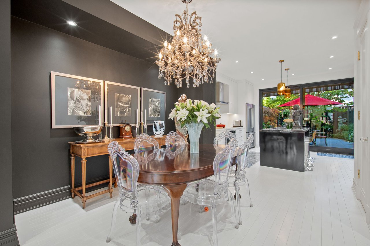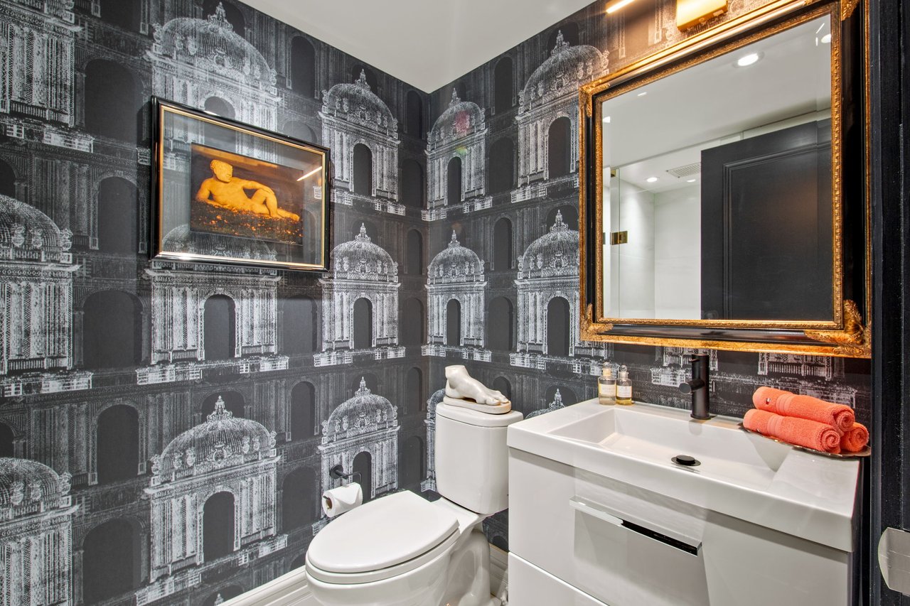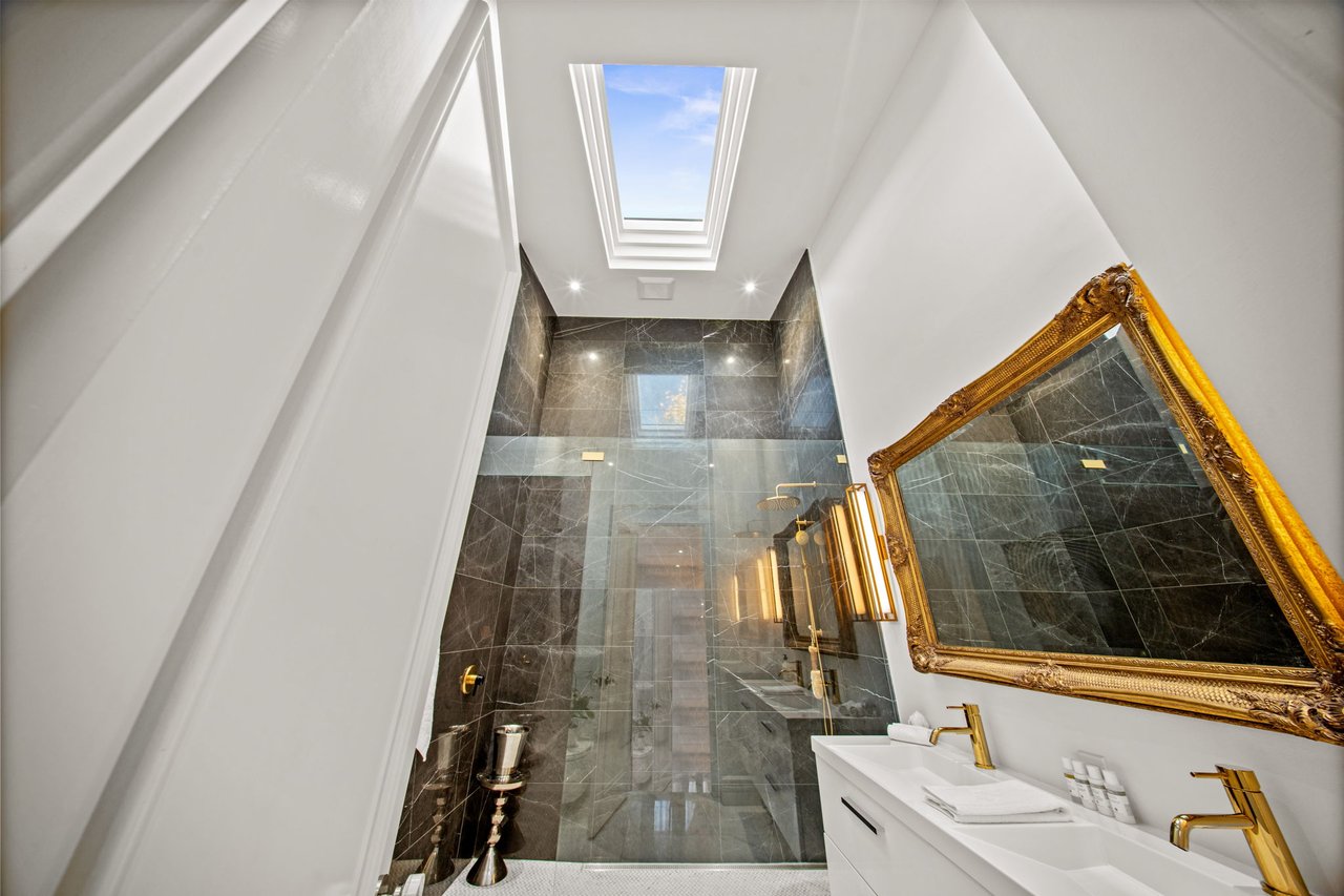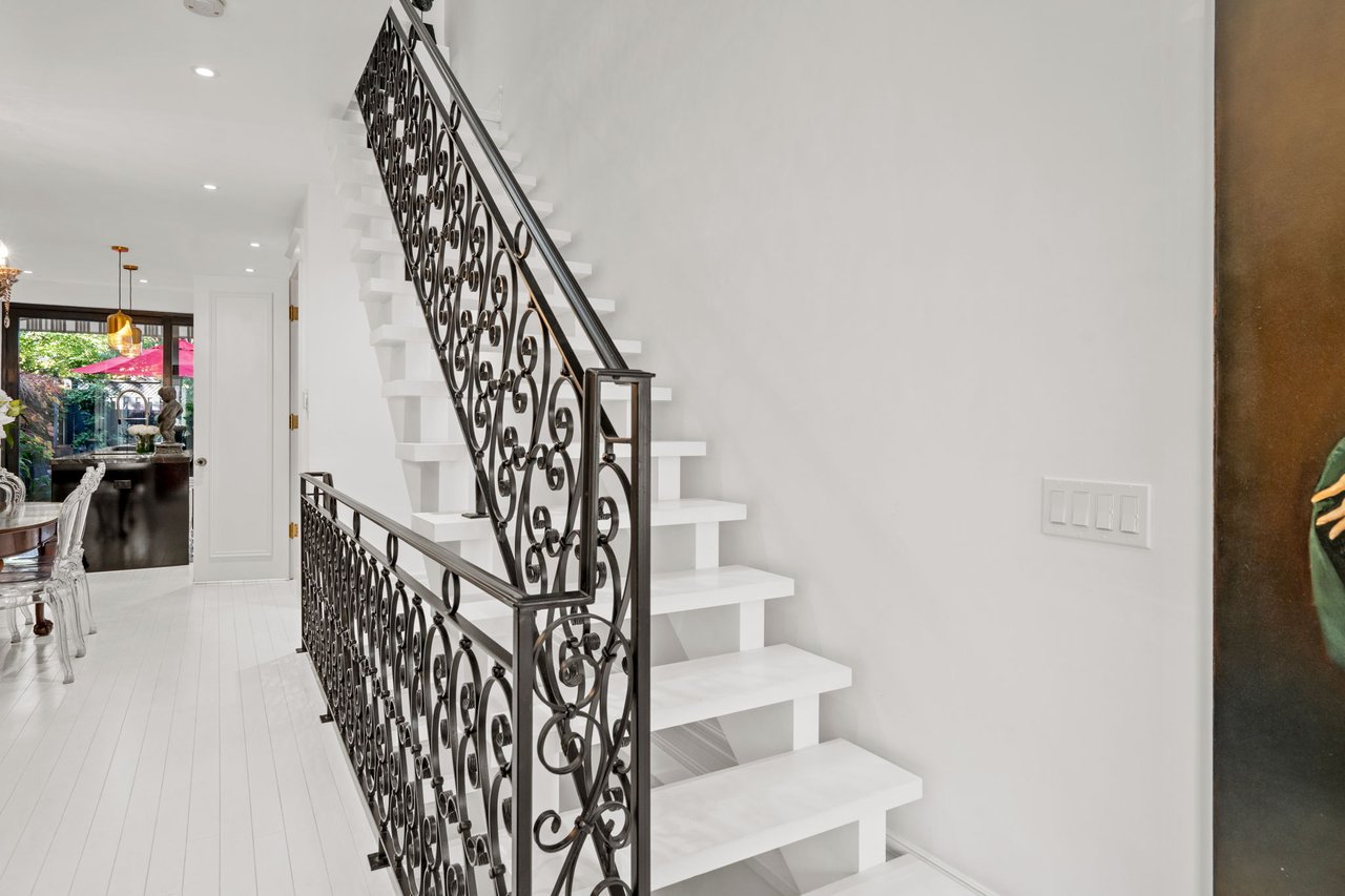 Welcome to 42 Berryman Street, a rare designer's residence built in 2003 and fully renovated in 2020, tucked away in the heart of Yorkville right off of Hazelton Ave. This fully customized home combines timeless Victorian architecture with contemporary European elegance, offering an unparalleled lifestyle for the most discerning buyer. The main floor is defined by a dramatic open-concept layout with soaring ceilings, a marble-slab feature wall with linear fireplace, and bespoke wrought-iron staircase detailing. Natural light pours through expansive windows and skylights, illuminating every refined finish. At the heart of the home, the chef's kitchen showcases full-height custom cabinetry, premium appliances, and a bold quartz waterfall island. Sleek pendant lighting and direct walkout access to a private courtyard make this space ideal for both everyday living and sophisticated entertaining. Upstairs, the vaulted primary suite offers a serene retreat with custom built-ins and a spa-inspired ensuite featuring a floating double vanity, dramatic marble shower. Additional bedrooms provide comfort and versatility, complemented by elegant baths finished with curated stone and designer fixtures. The fully finished lower level extends the living space with a flexible family room, private office, or gym complete with custom built-ins and a linear fireplace. Outdoors, a landscaped, maintenance-free courtyard offers a true urban sanctuary with granite tiling, privacy fencing, gas BBQ station-perfect for alfresco gatherings. Every detail at 42 Berryman has been carefully curated to deliver a residence of exceptional style, comfort, and sophistication.