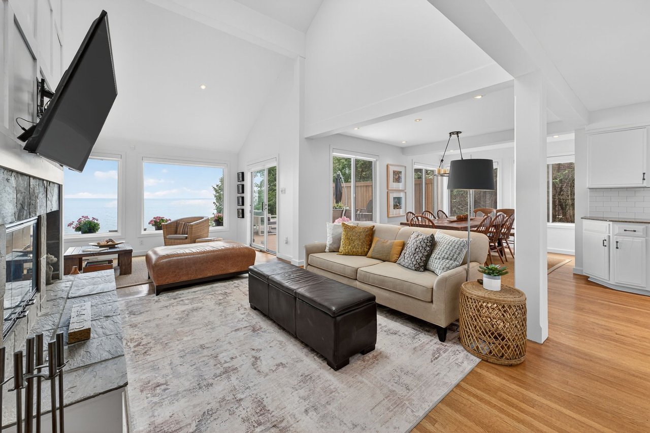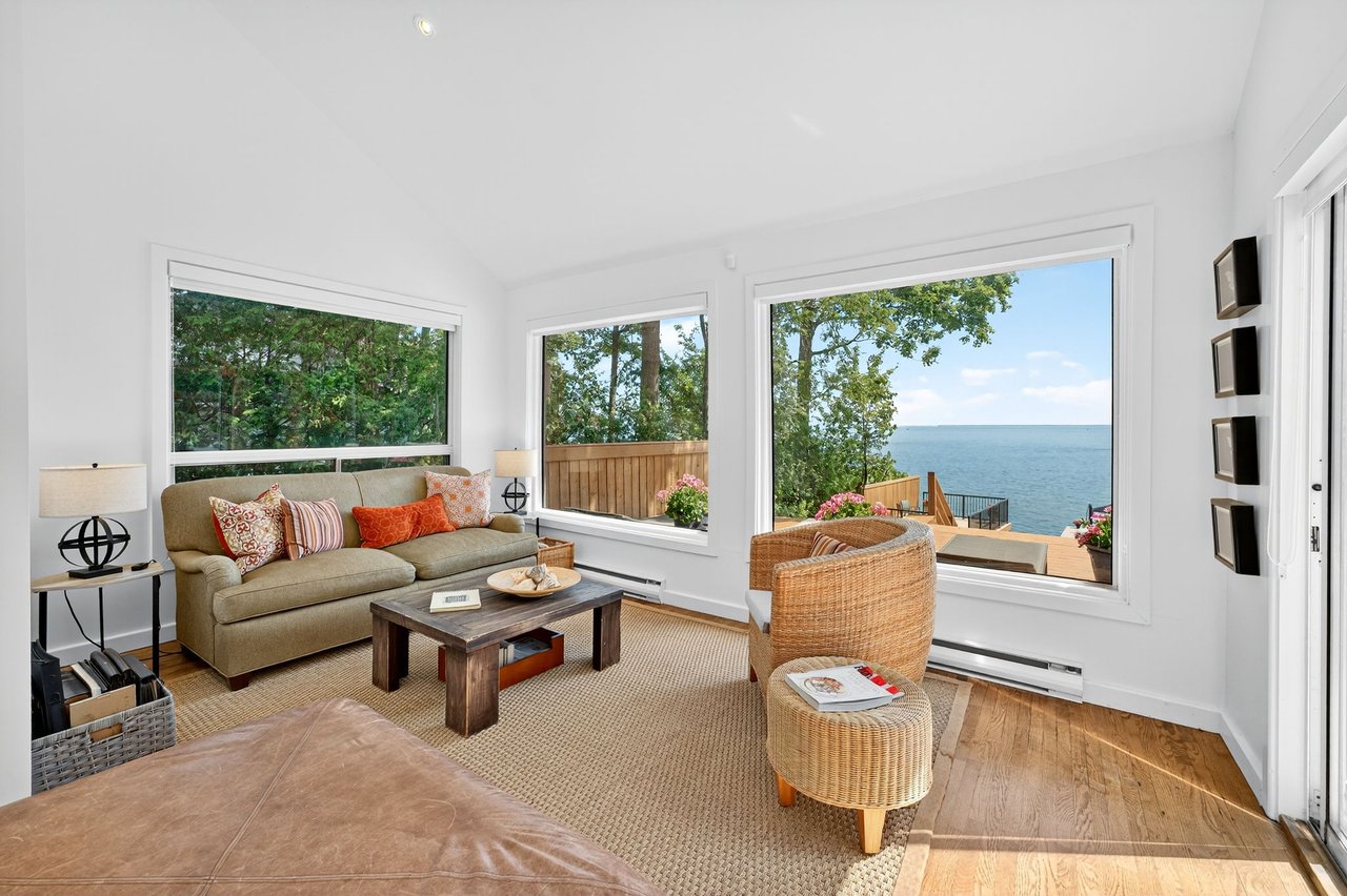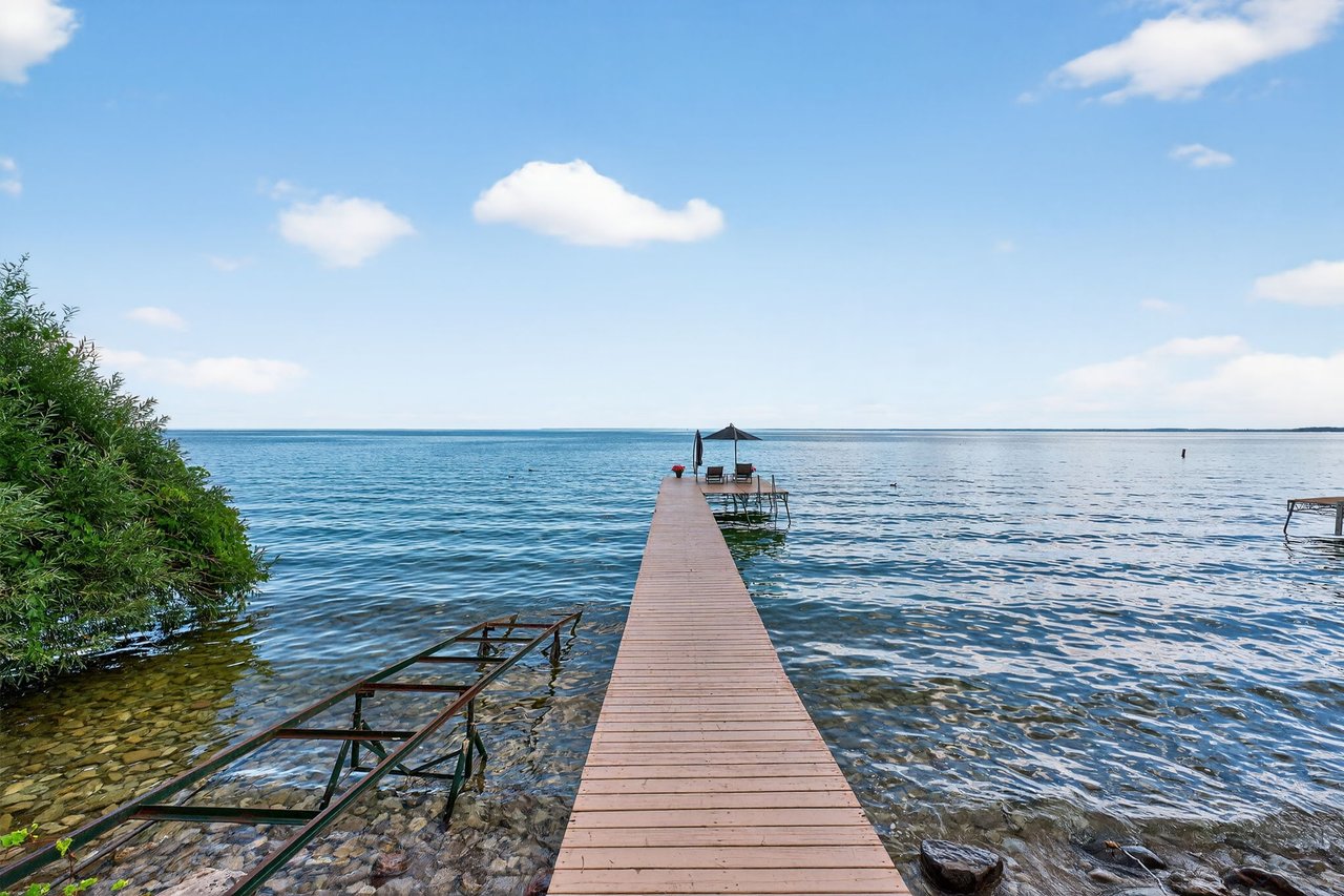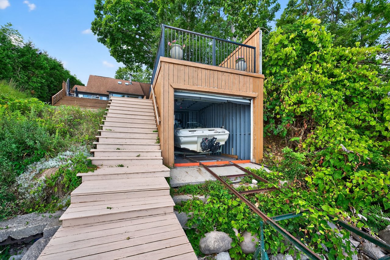 Welcome to lakeside living at its finest. Nestled on a quiet street with direct access to Lake Simcoe, this beautifully renovated home combines modern luxury with timeless charm. Step inside to find soaring cathedral ceilings, updated kitchen 2024 and spacious open concept design offering ample storage and year-round enjoyment. Boasting 5 bedrooms and 3 baths plus fully finished lower level. The thoughtful interior seamlessly extends to outdoors with landscaped gardens, an oversized deck with breathtaking lake views, and a private dock complete with built-in shade umbrellas and generous seating perfect for entertaining or unwinding by the water. Enjoy the rare luxury of a boathouse with motorized marine rail and rooftop sun deck, detached double-car garage and private parking for 10 vehicles. Located just a short walk to the vibrant shops and restaurants of Friday Harbour, only 20 minutes from downtown Barrie, and just an hours drive from Toronto, this exceptional property offers both tranquility and convenience with all amenities at your fingertips. Whether as a full-time residence or weekend retreat, this Lake Simcoe gem is turn key ready to be enjoyed.
