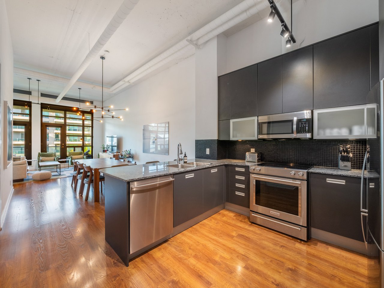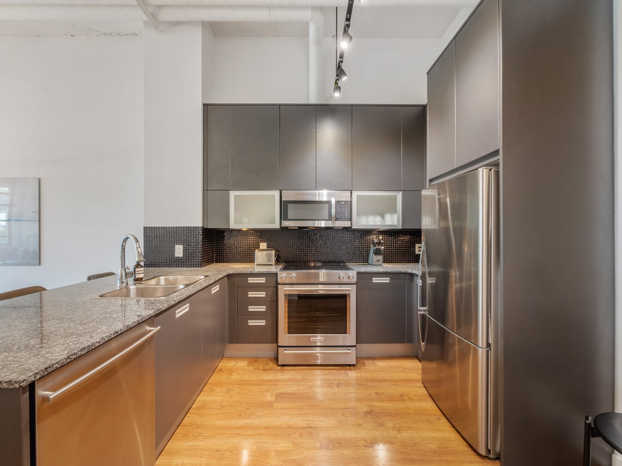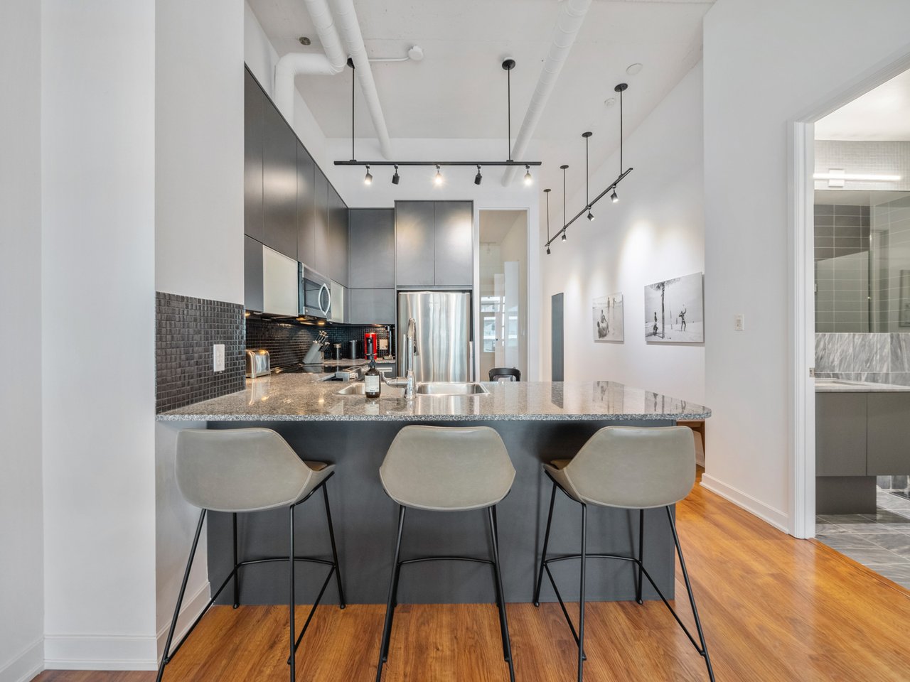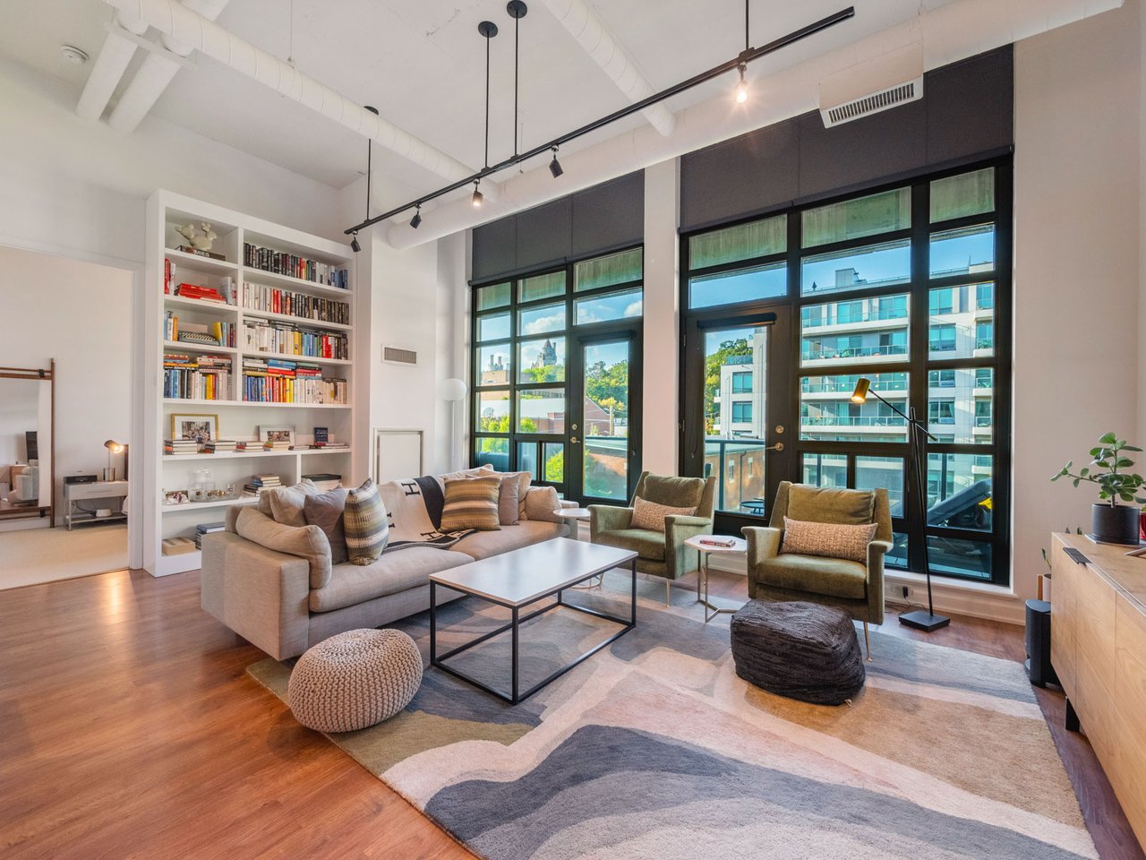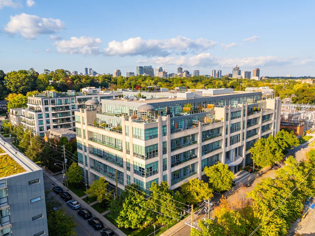The One You Have Been Waiting For And Shows To Perfection! Highly Sought After 2 Bedroom Plus Den Suite At Madison Lofts. New York Like Living In The Annex. Soaring 12Ft Concrete Ceilings And Wow Factor From The Moment You Enter. 1,200 SF. Open Concept Layout Designed With Entertaining In Mind. Overlooks The Quiet Building Courtyard With Casa Loma Views From Your Balcony. Updated Balcony Flooring. Fabulous Built-in F-C Bookshelf. Lutron Lighting And Black Track Lighting. Parking Spot With EV Charger! Living Room Open To The Expansive Dining Room And Boasts A Walk-Out To The Balcony. Kitchen Has Granite Countertops, A Great Breakfast Bar, And Stainless Steel Appliances. 5 Star Building Amenities Include Gym, Sauna, Party Meeting Room, Concierge, Visitor Parking And Picturesque Rooftop Terrace with BBQs. Steps to the Annex, Yorkville. Forest Hill, TTC, And Shops, And Eateries Along Dupont, The Best Parks And Renowned Schools. Amazing Loft In A Great Neighbourhood!